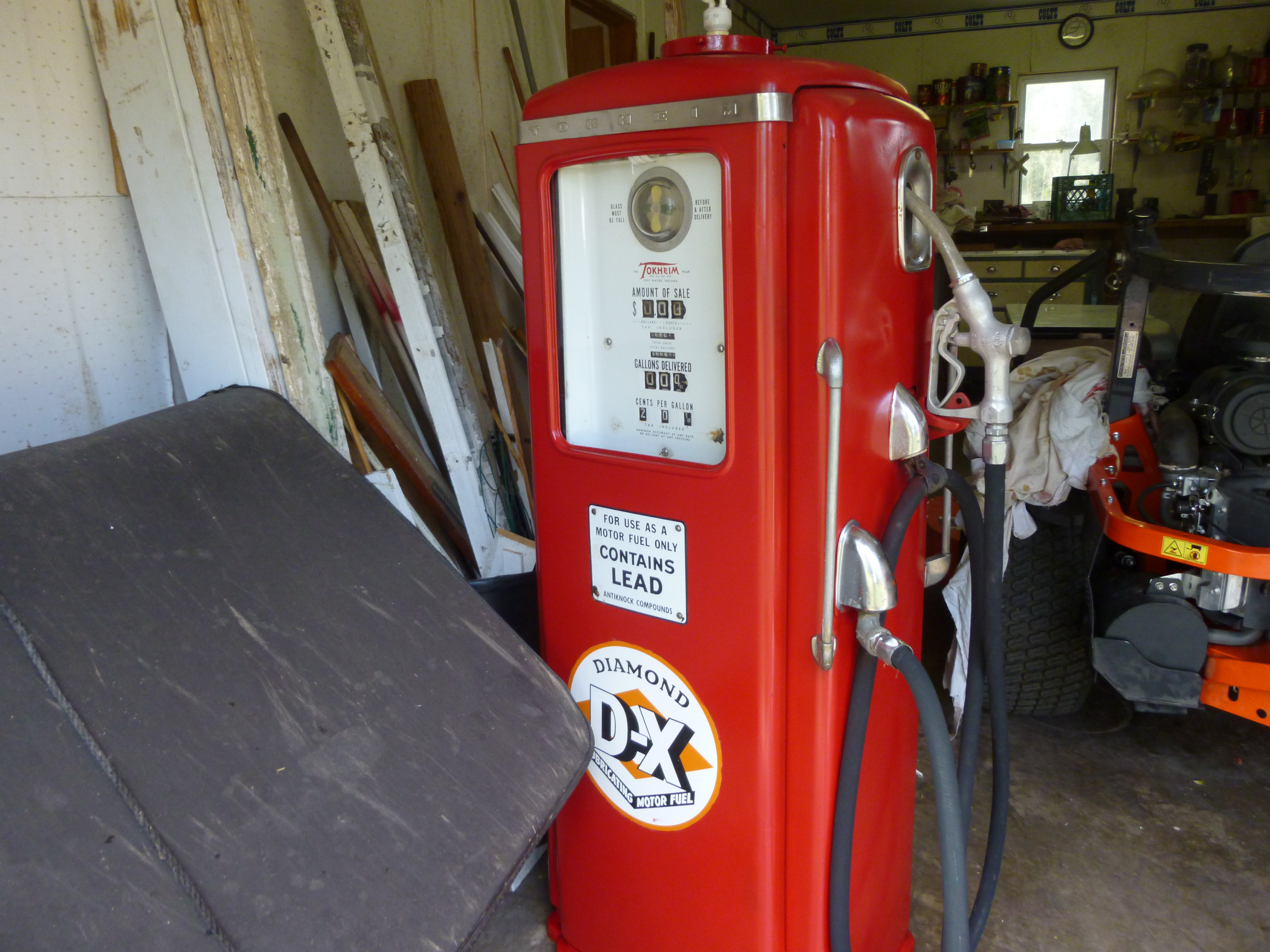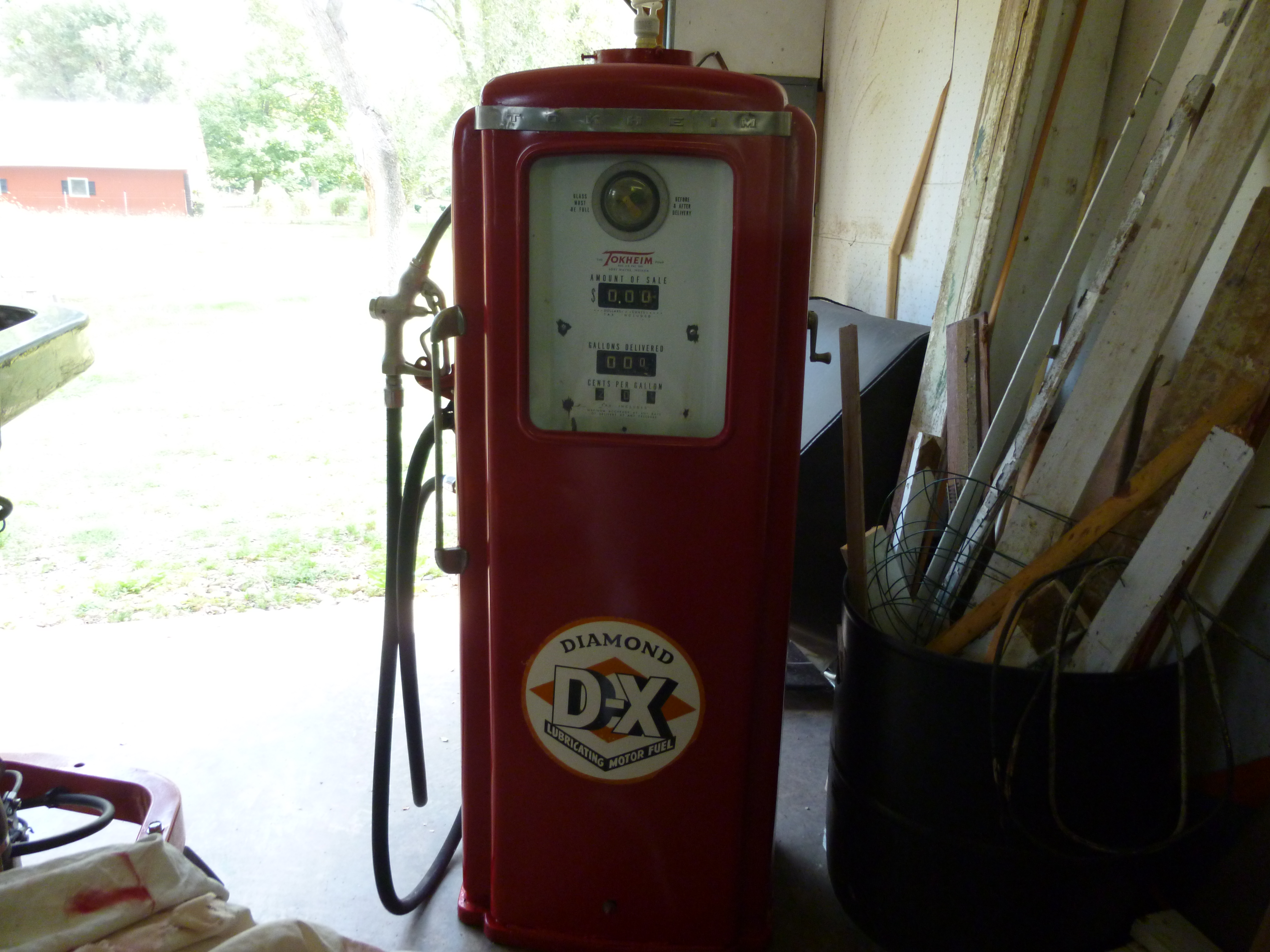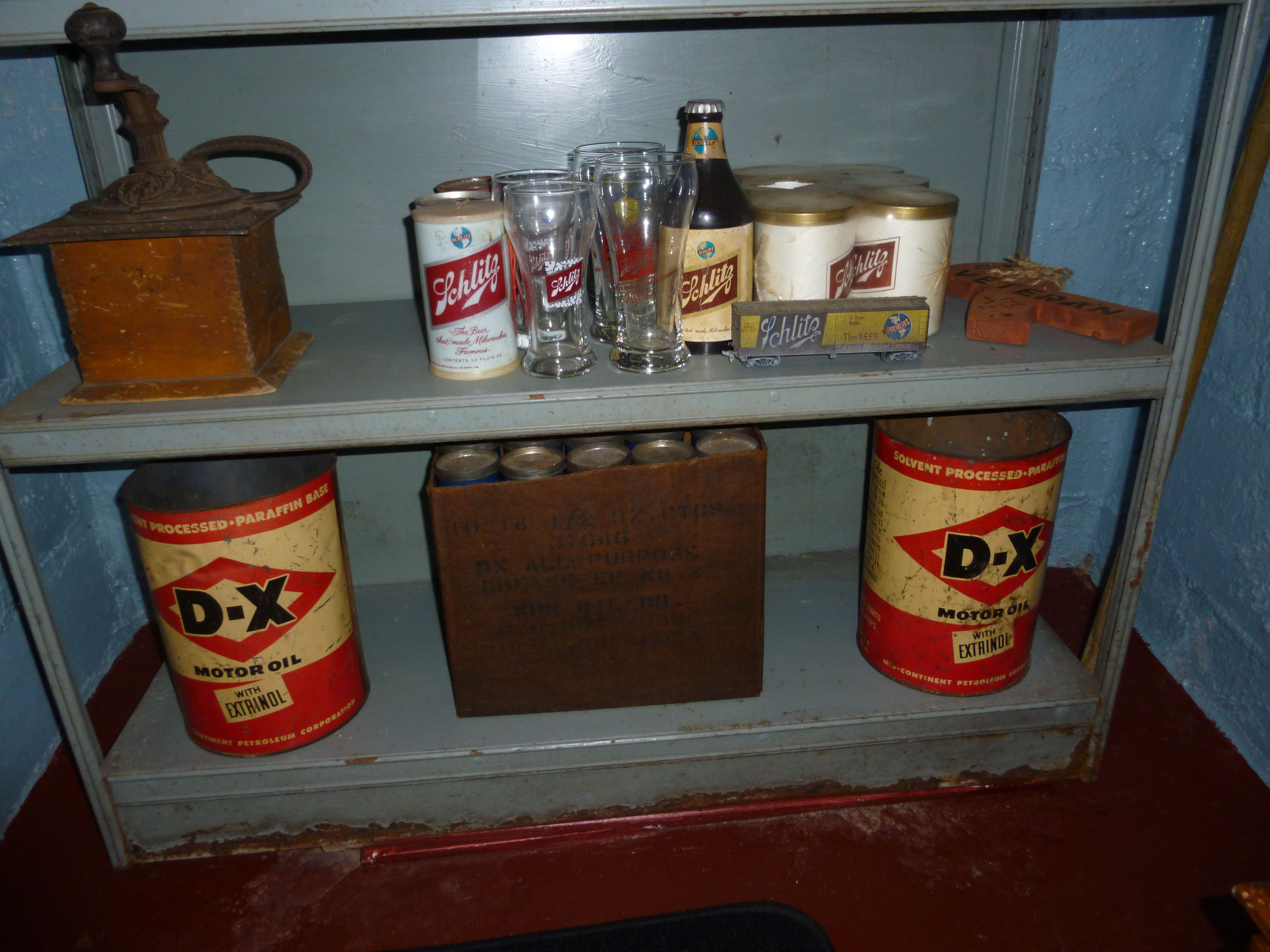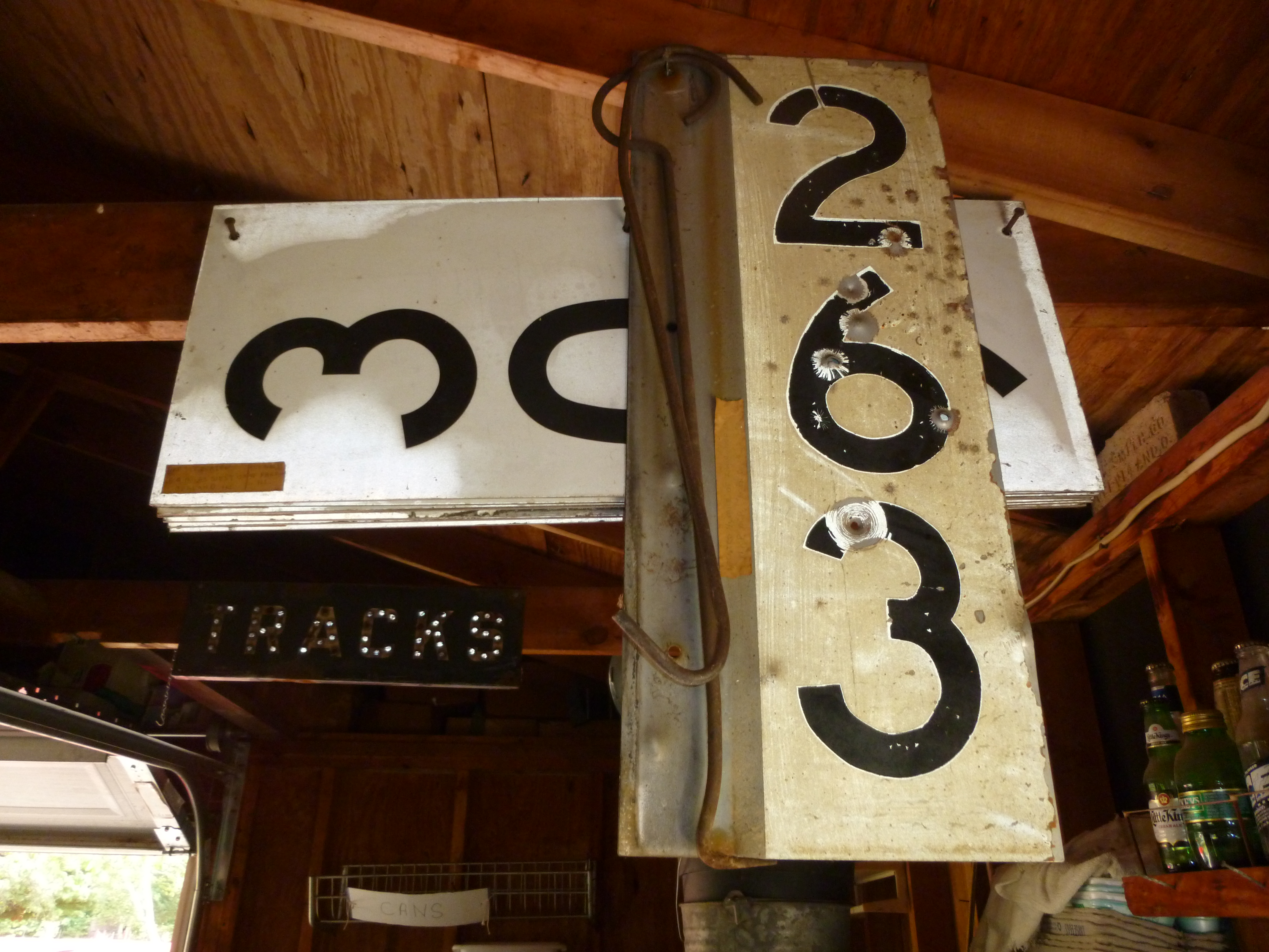 Danville Junction sign; old metal mile markers;  Northfork & Western digging signs; RR signs; early RR locks  – 1950’s; later RR locks; N & W RR car seals – 1950’s; metal RR lantern;  Barber,  Justrite,  Starlite; plastic RR battery lanterns – orange &  yellow Norfork & Southern; Virginia RR  amber color lantern; RR Terre Haute bricks;  Nickle Plate ball peen hammer;  NP shovel; NP scoop;  Cat Eye track sign; RR Derail switch; 1940 Nickle Plate RR ledger – Cayuga – Veedersburg;  RR records   from Chicago – Attica ; T144203 white signal light; train order box; telegraph key; mile post marker Tilton, Illinois; round red sign marker; boxes of RR paper letter heads; RR rule books; RR water cans;  time tables;  New York lantern; So Pacific oiler;  EI & I RR galvanized bucket; N& W RR bucket with spout; 2 caboose lights from Wabash RR;  4’ x 8’ train track board; O gage track and engine & cars; Athear miniature train and accessories; 2 train transformers; covered wagon engines, work engines;  DX motor oil sign; 3 DX original gas pump globes; DX Ethyl gas pump; Diamond DX gas pump 20 cents a gallon; DX road map holder; DX gas cans; Standard 5 gal. cans; Texaco; 3 Wareco window cleaning stations;  Phillips Repo Ethyl 1989 gas pump globe;  Master Manufactured glass oil jar;   Golden Rod oil can; Select 100 matic coin table record selector; small metal basket Hall of Fame signed baseballs including:  Ted Williams, Brook Robinson, Bob Feller, Duke Snider, Yogi Berra, Willie Mays;  collection of 8” pennants from 1942 -26; Pete Rose signed balls;  autographed Major League baseball bats; White Sox statues; 2001 signed scorecard; 1939 World Series  schedule with 1957 ticket stub; part of seat from Comiskey Park; Chicago White Sox bench with retired numbers; lighted score stat box; ball bat collection; Chicago White Sox pants and shirt dated 1953;  North Vermillion state champs autographed photo; Prohibition White Sox juice bottle.
