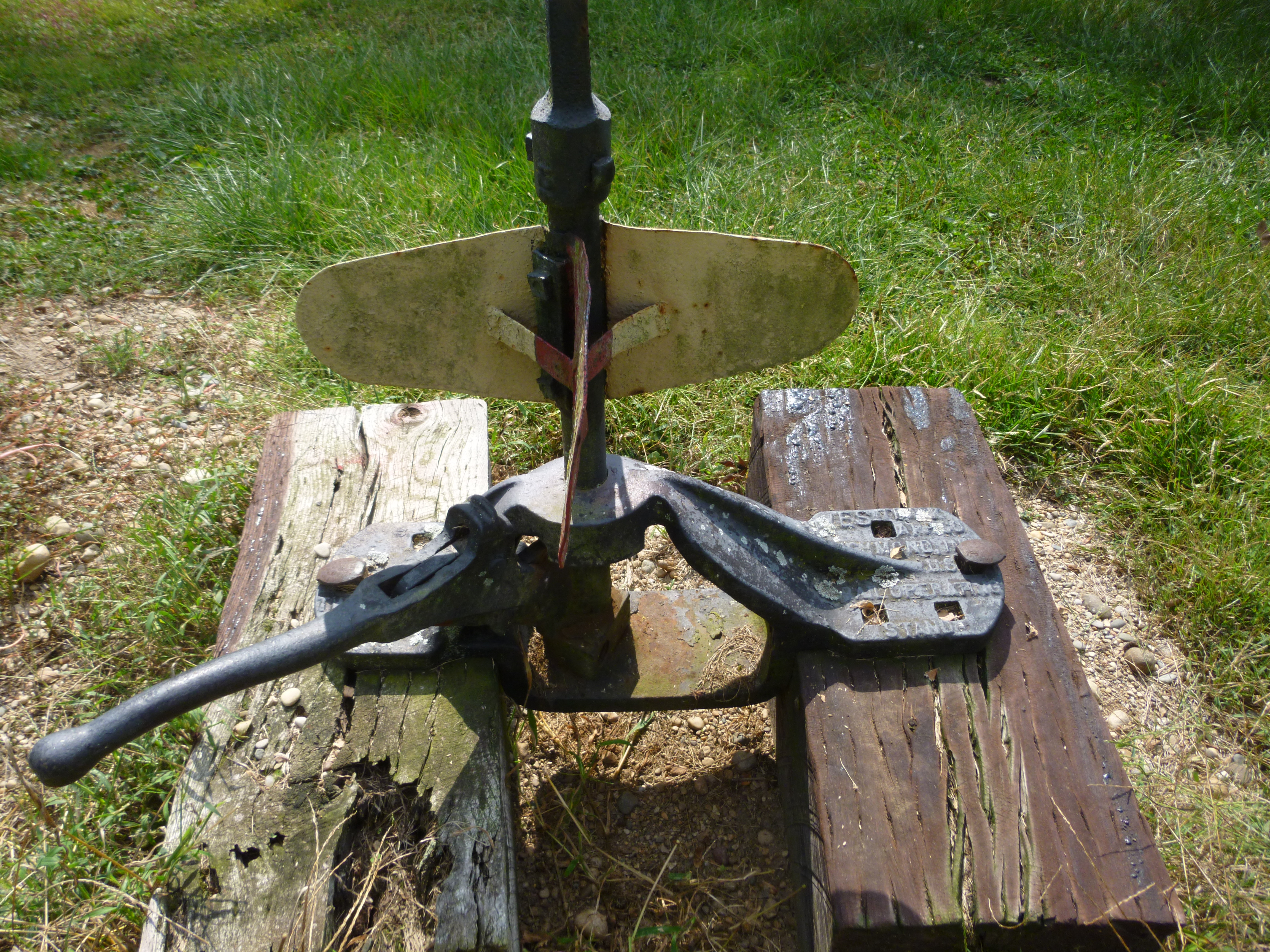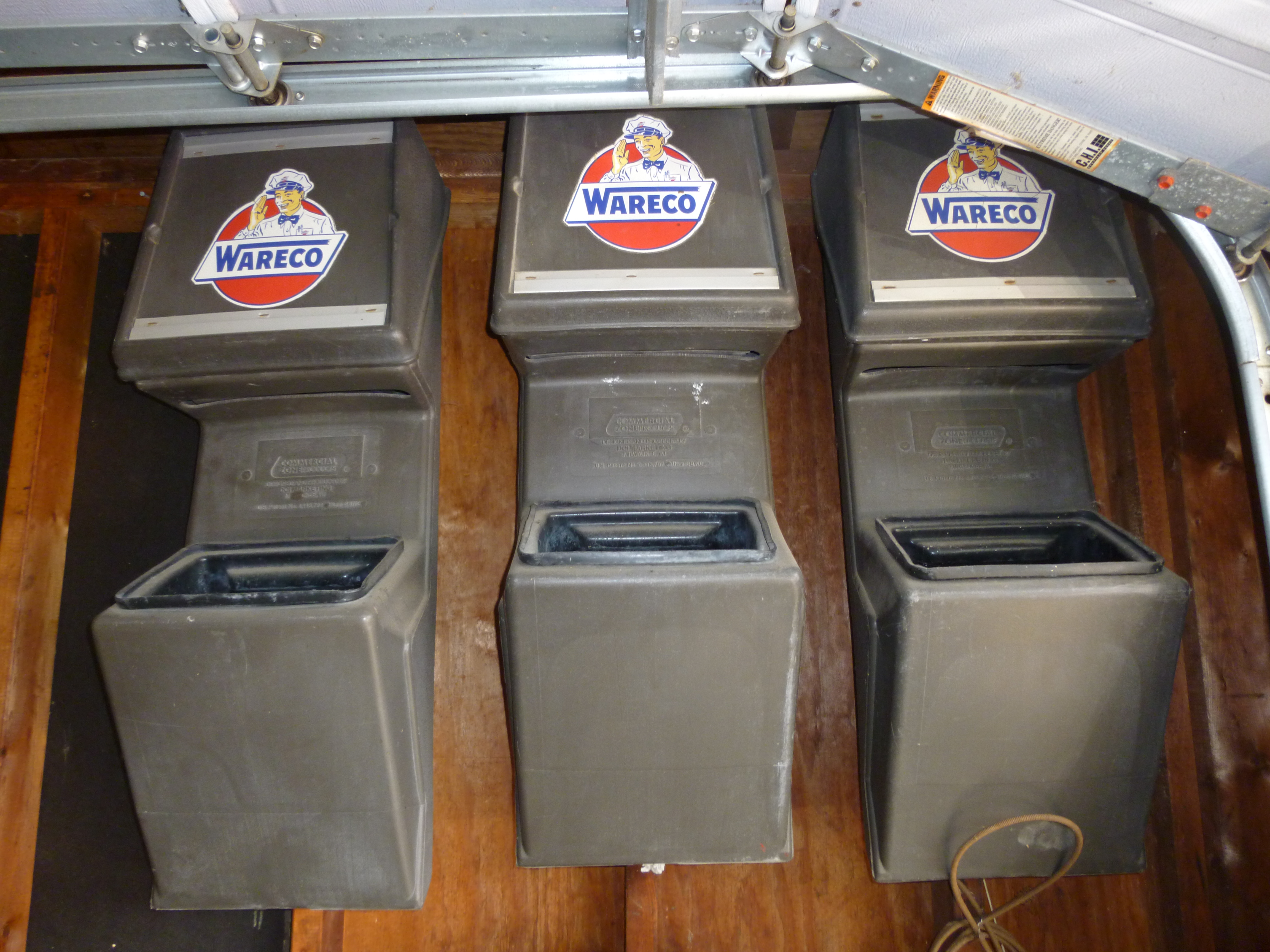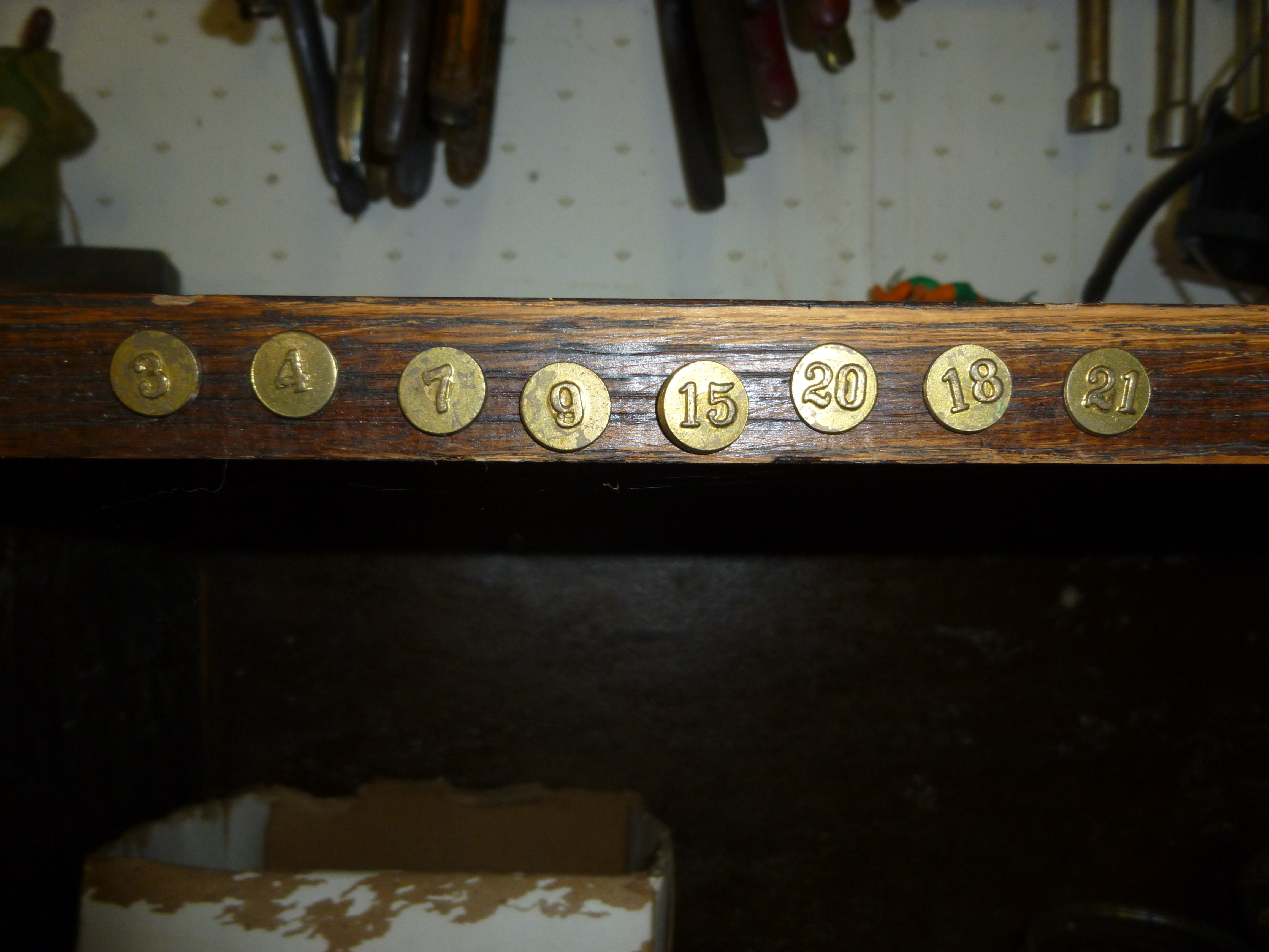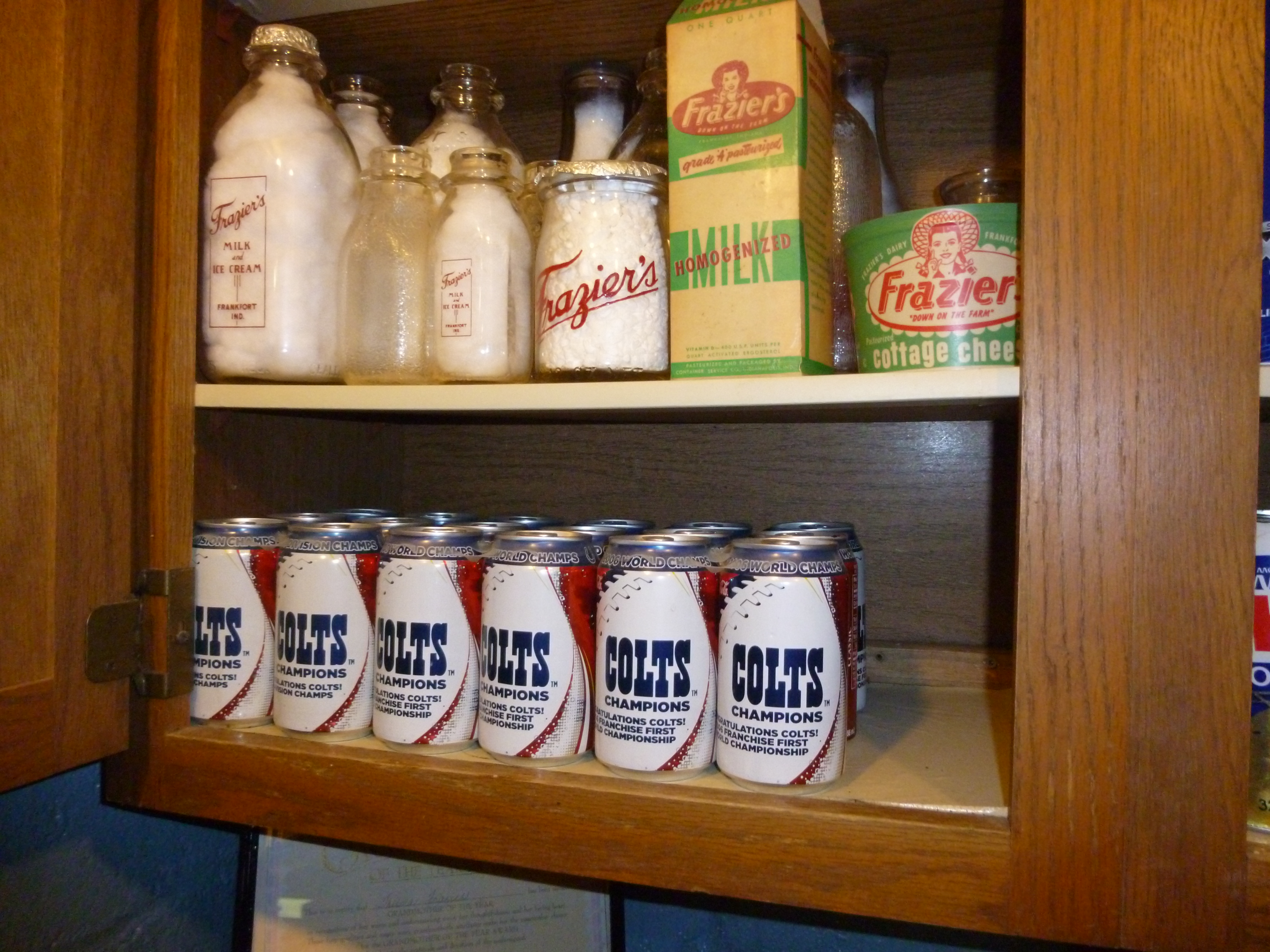 Danville Junction sign; old metal mile markers;  Northfork & Western digging signs; RR signs; early RR locks  – 1950’s; later RR locks; N & W RR car seals – 1950’s; metal RR lantern;  Barber,  Justrite,  Starlite; plastic RR battery lanterns – orange &  yellow Norfork & Southern; Virginia RR  amber color lantern; RR Terre Haute bricks;  Nickle Plate ball peen hammer;  NP shovel; NP scoop;  Cat Eye track sign; RR Derail switch; 1940 Nickle Plate RR ledger – Cayuga – Veedersburg;  RR records   from Chicago – Attica ; T144203 white signal light; train order box; telegraph key; mile post marker Tilton, Illinois; round red sign marker; boxes of RR paper letter heads; RR rule books; RR water cans;  time tables;  New York lantern; So Pacific oiler;  EI & I RR galvanized bucket; N& W RR bucket with spout; 2 caboose lights from Wabash RR;  4’ x 8’ train track board; O gage track and engine & cars; Athear miniature train and accessories; 2 train transformers; covered wagon engines, work engines;  DX motor oil sign; 3 DX original gas pump globes; DX Ethyl gas pump; Diamond DX gas pump 20 cents a gallon; DX road map holder; DX gas cans; Standard 5 gal. cans; Texaco; 3 Wareco window cleaning stations;  Phillips Repo Ethyl 1989 gas pump globe;  Master Manufactured glass oil jar;   Golden Rod oil can; Select 100 matic coin table record selector; small metal basket Hall of Fame signed baseballs including:  Ted Williams, Brook Robinson, Bob Feller, Duke Snider, Yogi Berra, Willie Mays;  collection of 8” pennants from 1942 -26; Pete Rose signed balls;  autographed Major League baseball bats; White Sox statues; 2001 signed scorecard; 1939 World Series  schedule with 1957 ticket stub; part of seat from Comiskey Park; Chicago White Sox bench with retired numbers; lighted score stat box; ball bat collection; Chicago White Sox pants and shirt dated 1953;  North Vermillion state champs autographed photo; Prohibition White Sox juice bottle.