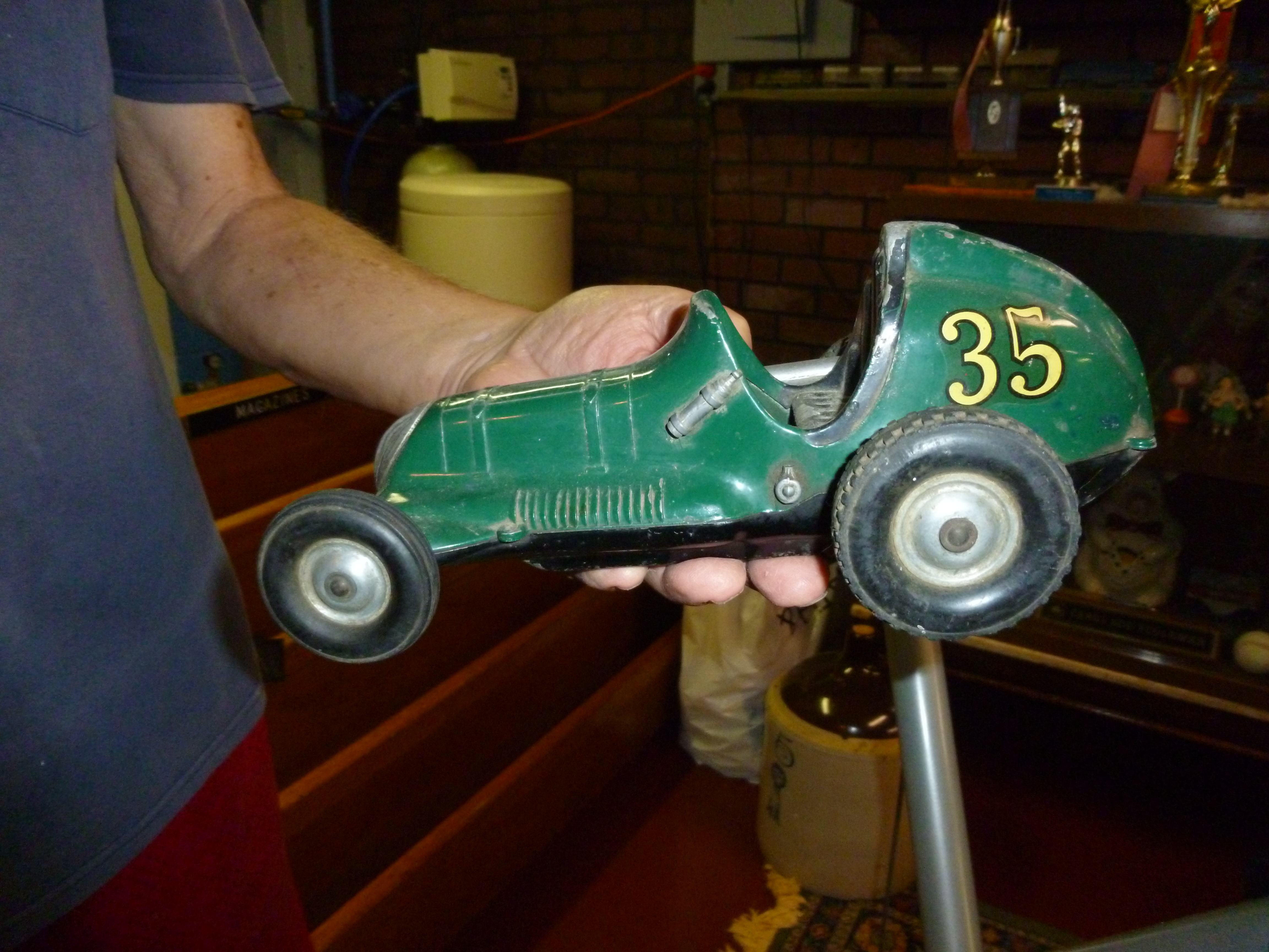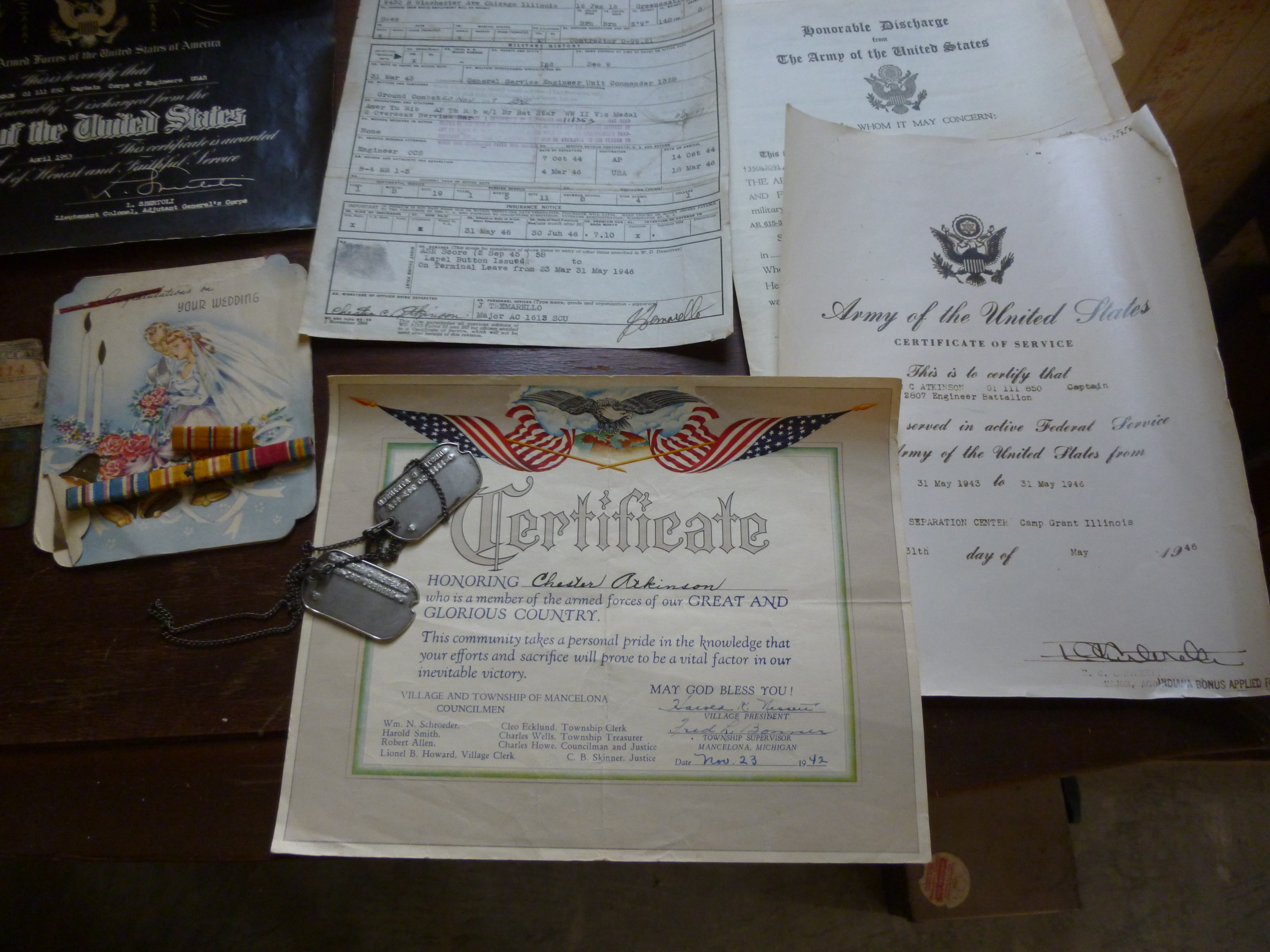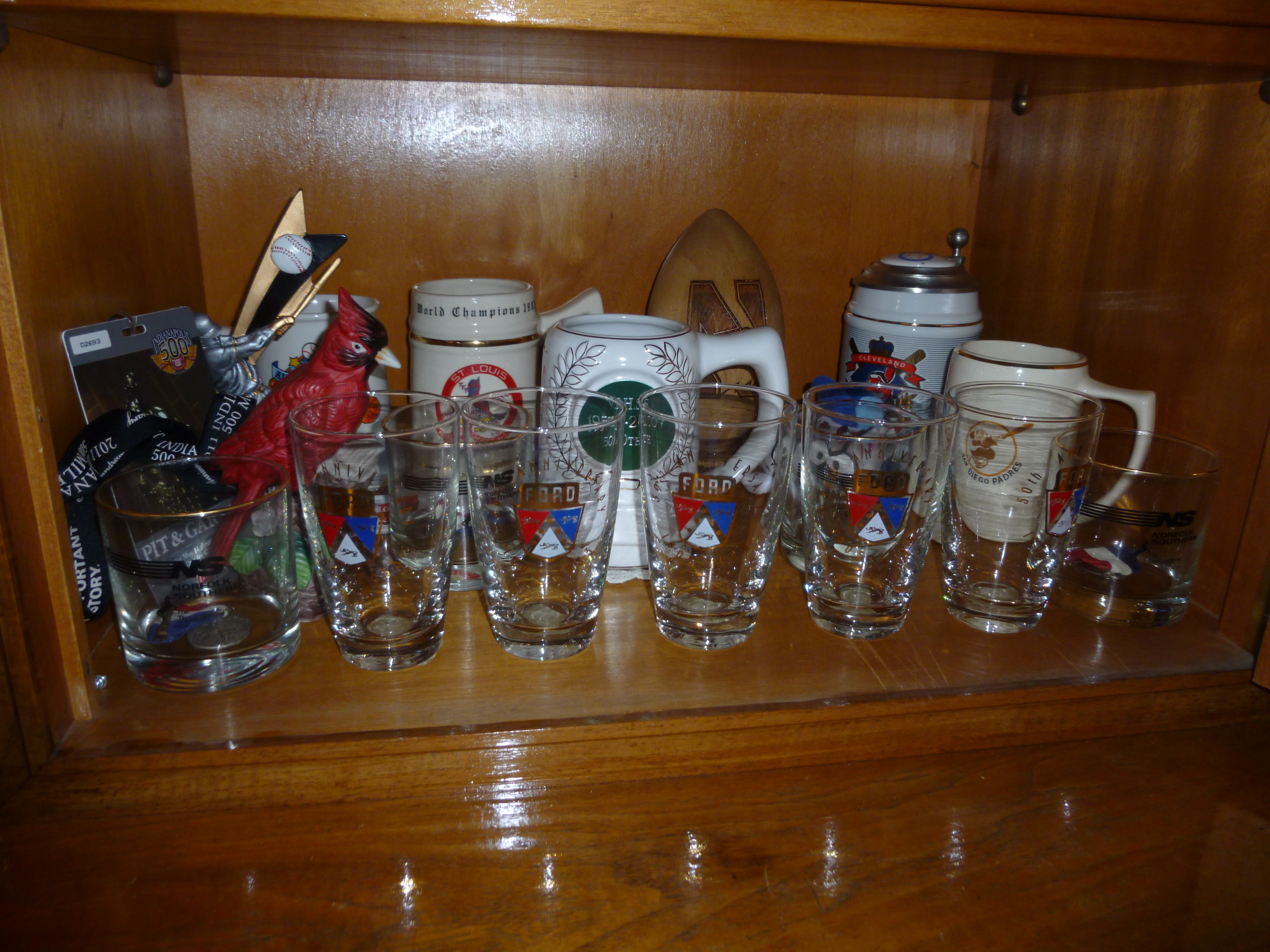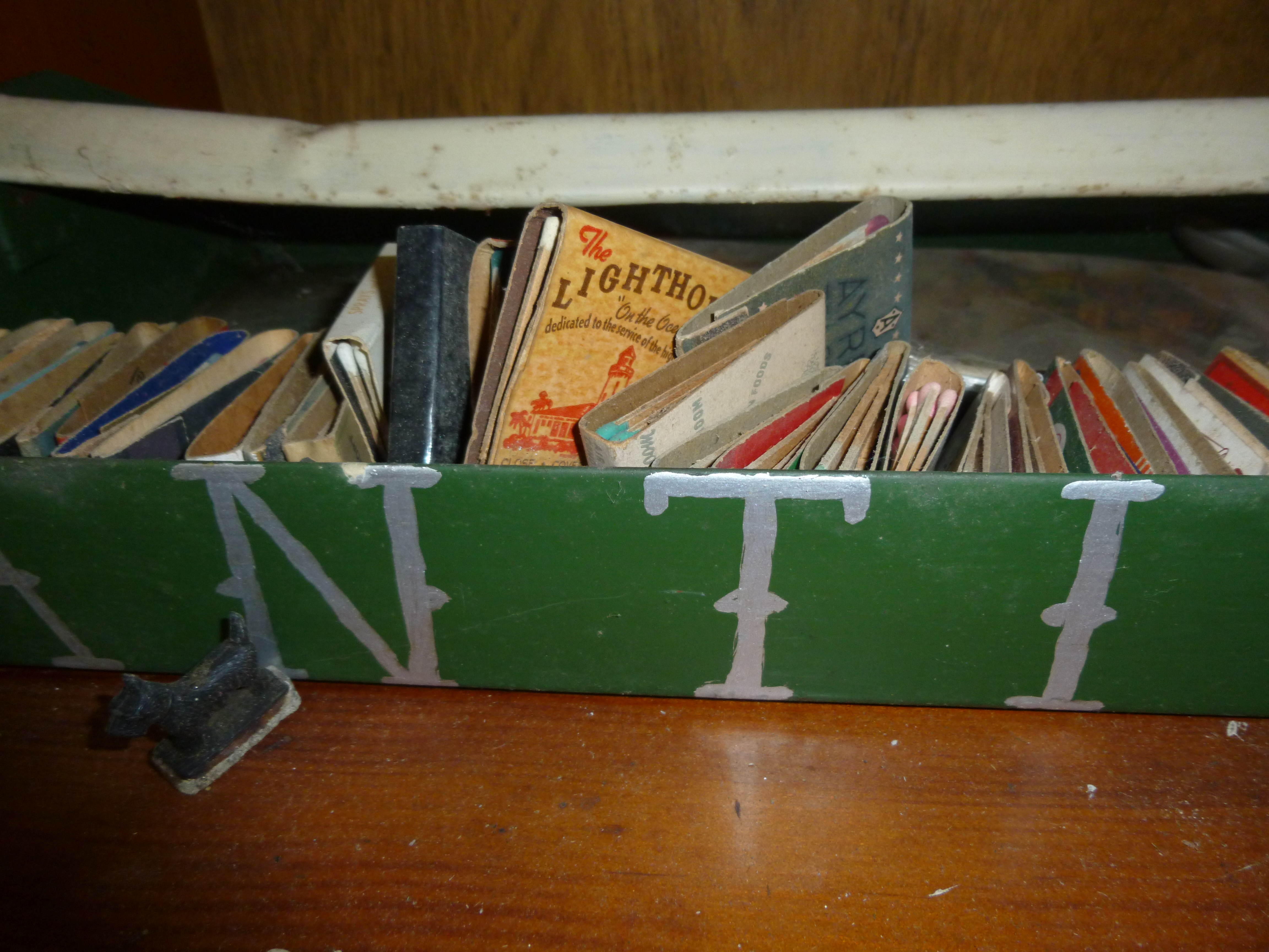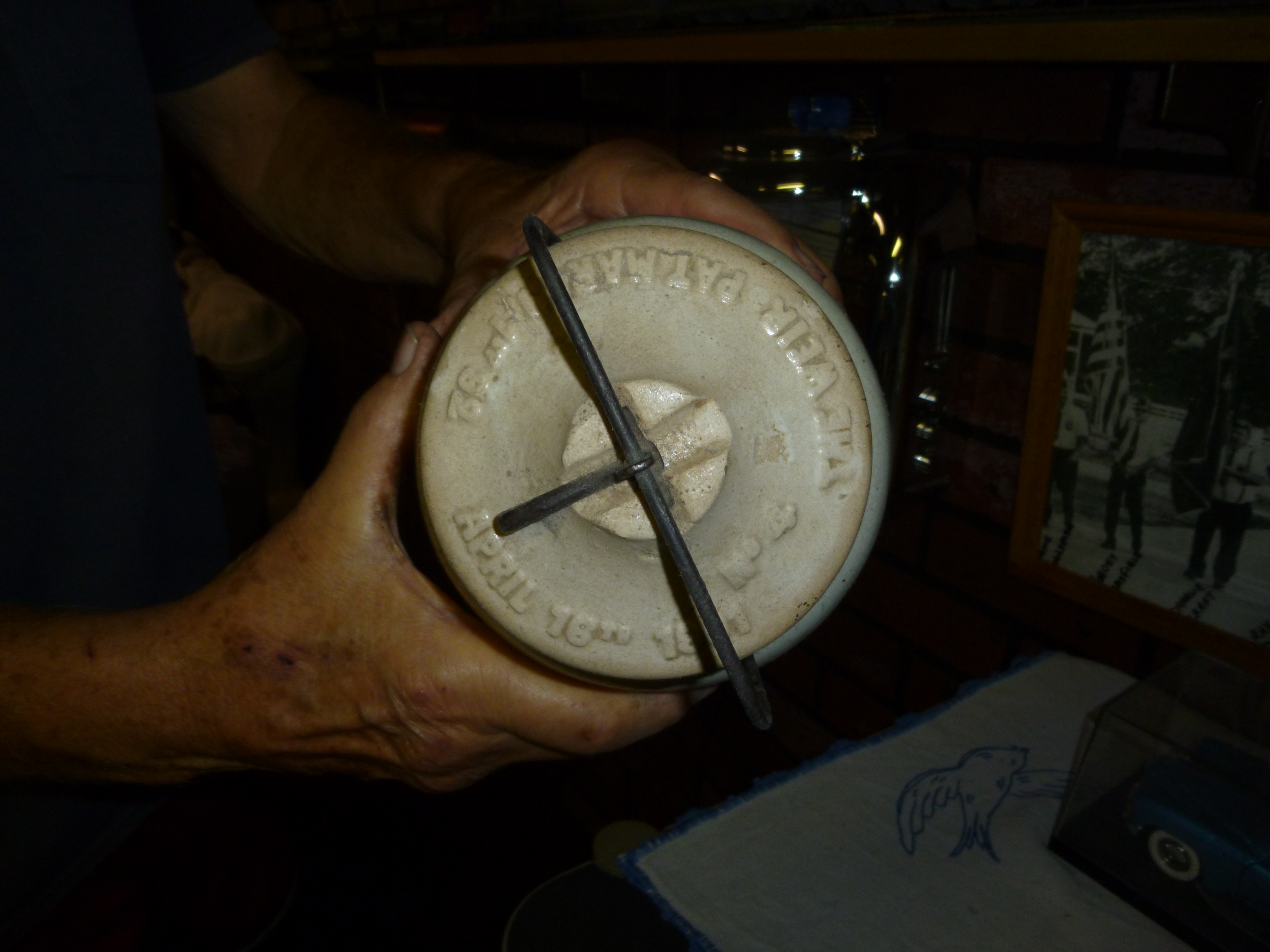 Danville Junction sign; old metal mile markers;  Northfork & Western digging signs; RR signs; early RR locks  – 1950’s; later RR locks; N & W RR car seals – 1950’s; metal RR lantern;  Barber,  Justrite,  Starlite; plastic RR battery lanterns – orange &  yellow Norfork & Southern; Virginia RR  amber color lantern; RR Terre Haute bricks;  Nickle Plate ball peen hammer;  NP shovel; NP scoop;  Cat Eye track sign; RR Derail switch; 1940 Nickle Plate RR ledger – Cayuga – Veedersburg;  RR records   from Chicago – Attica ; T144203 white signal light; train order box; telegraph key; mile post marker Tilton, Illinois; round red sign marker; boxes of RR paper letter heads; RR rule books; RR water cans;  time tables;  New York lantern; So Pacific oiler;  EI & I RR galvanized bucket; N& W RR bucket with spout; 2 caboose lights from Wabash RR;  4’ x 8’ train track board; O gage track and engine & cars; Athear miniature train and accessories; 2 train transformers; covered wagon engines, work engines;  DX motor oil sign; 3 DX original gas pump globes; DX Ethyl gas pump; Diamond DX gas pump 20 cents a gallon; DX road map holder; DX gas cans; Standard 5 gal. cans; Texaco; 3 Wareco window cleaning stations;  Phillips Repo Ethyl 1989 gas pump globe;  Master Manufactured glass oil jar;   Golden Rod oil can; Select 100 matic coin table record selector; small metal basket Hall of Fame signed baseballs including:  Ted Williams, Brook Robinson, Bob Feller, Duke Snider, Yogi Berra, Willie Mays;  collection of 8” pennants from 1942 -26; Pete Rose signed balls;  autographed Major League baseball bats; White Sox statues; 2001 signed scorecard; 1939 World Series  schedule with 1957 ticket stub; part of seat from Comiskey Park; Chicago White Sox bench with retired numbers; lighted score stat box; ball bat collection; Chicago White Sox pants and shirt dated 1953;  North Vermillion state champs autographed photo; Prohibition White Sox juice bottle.