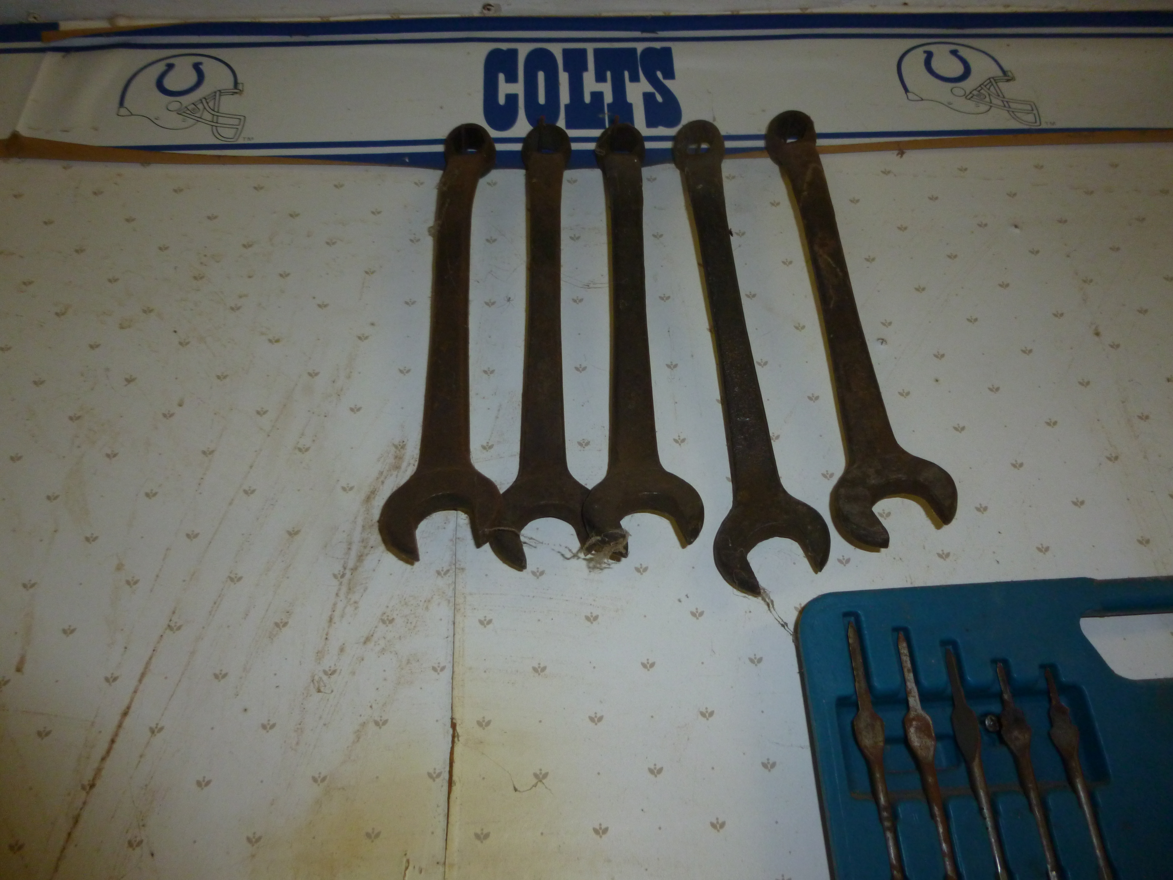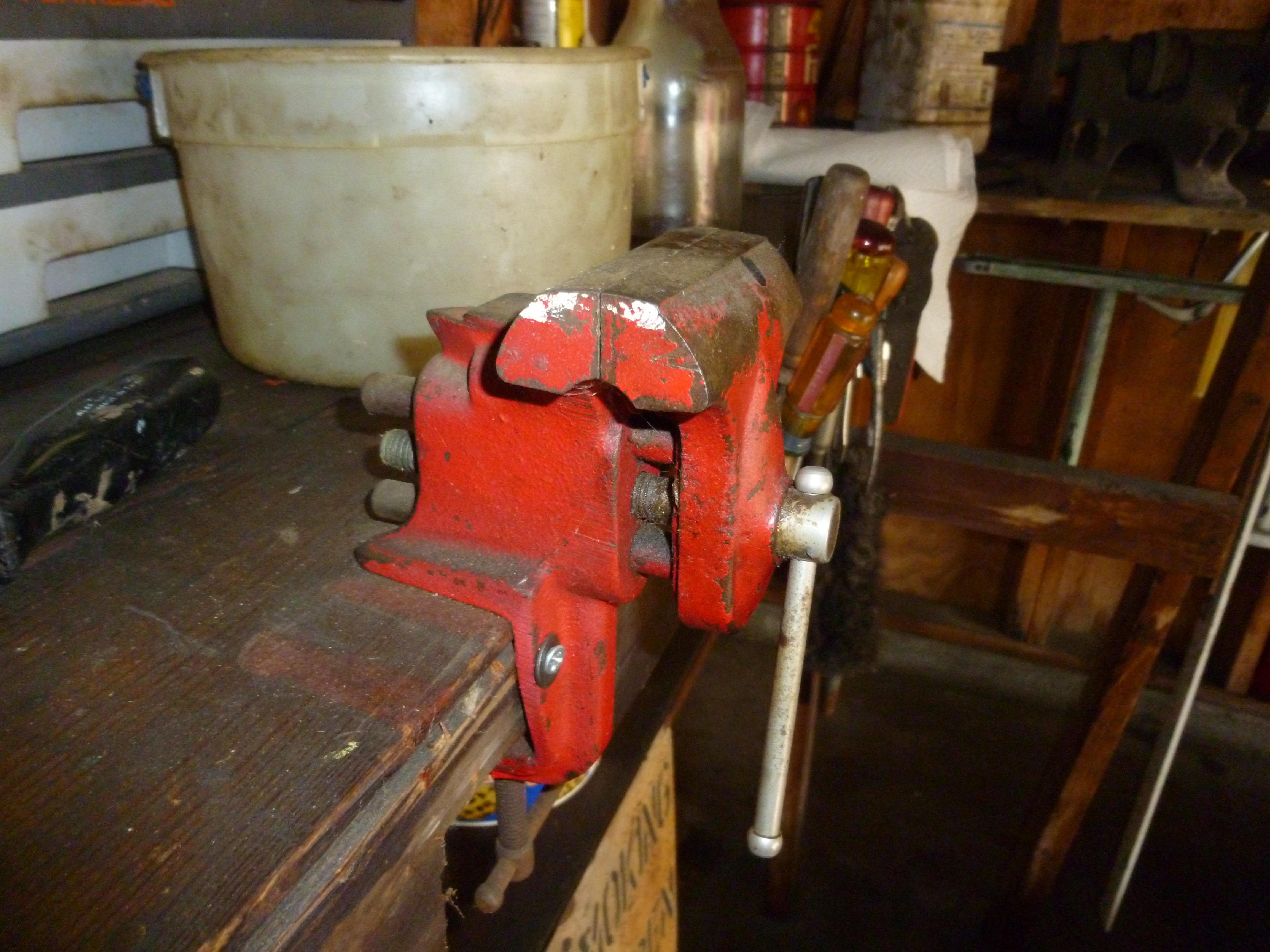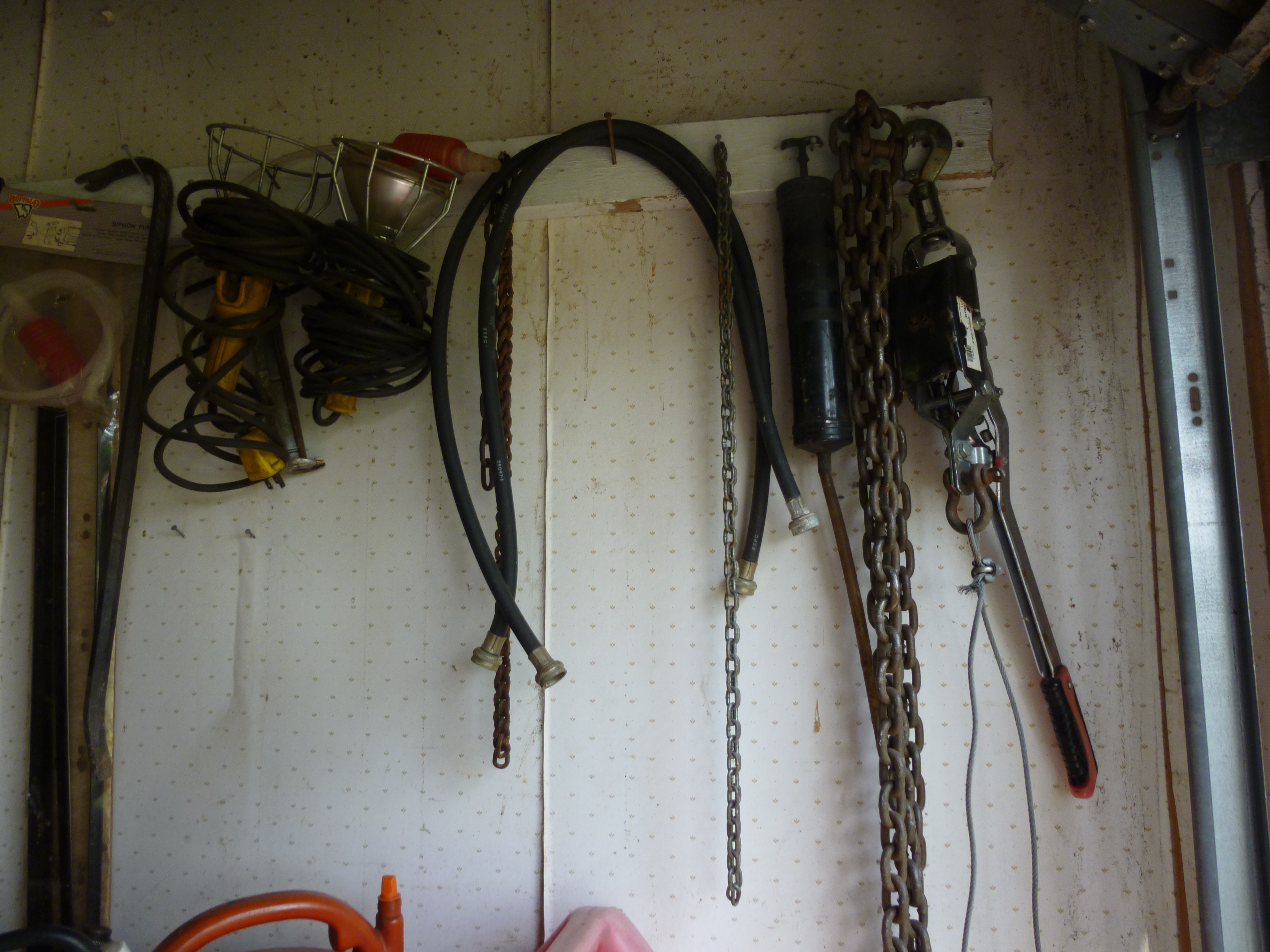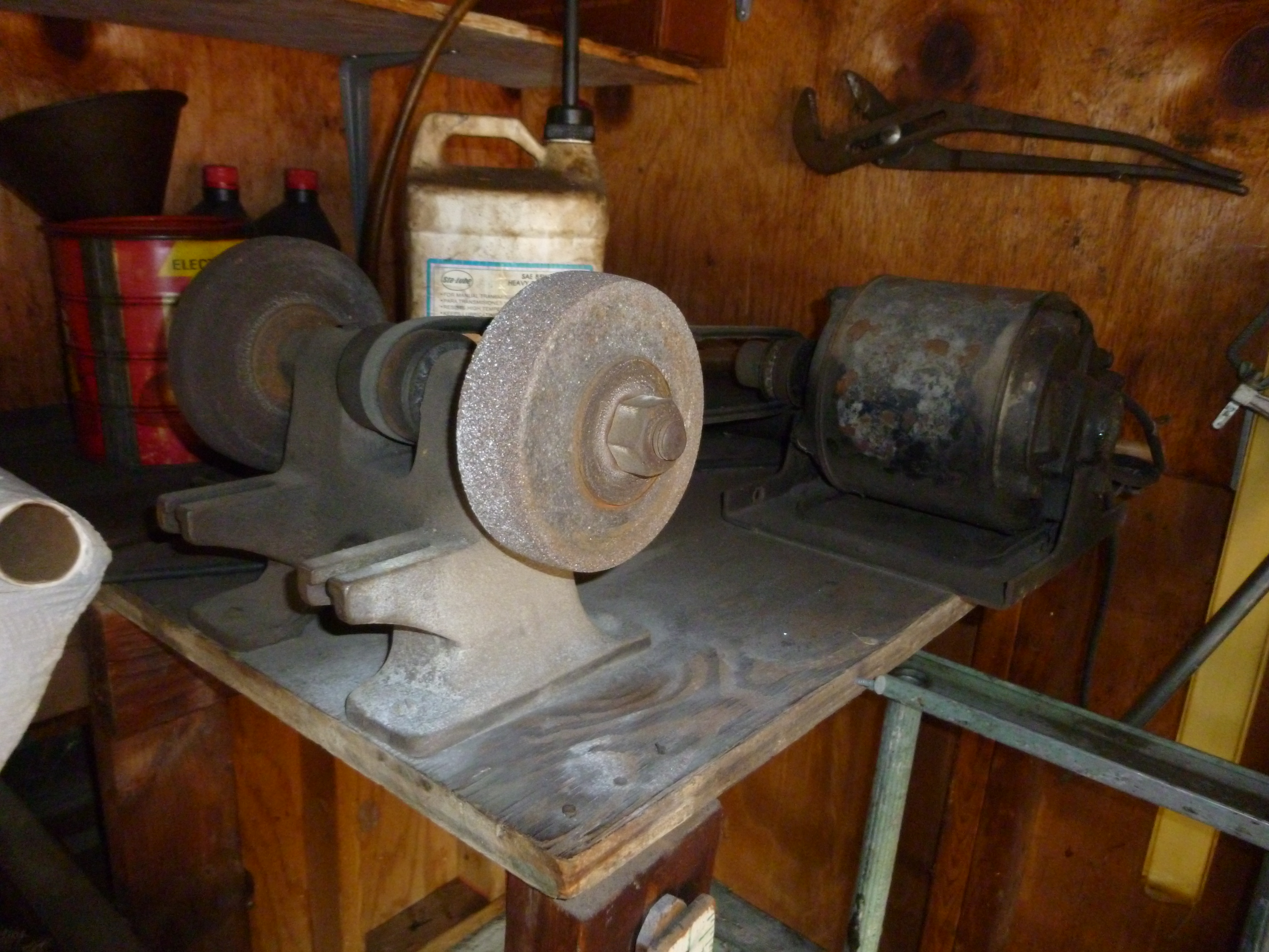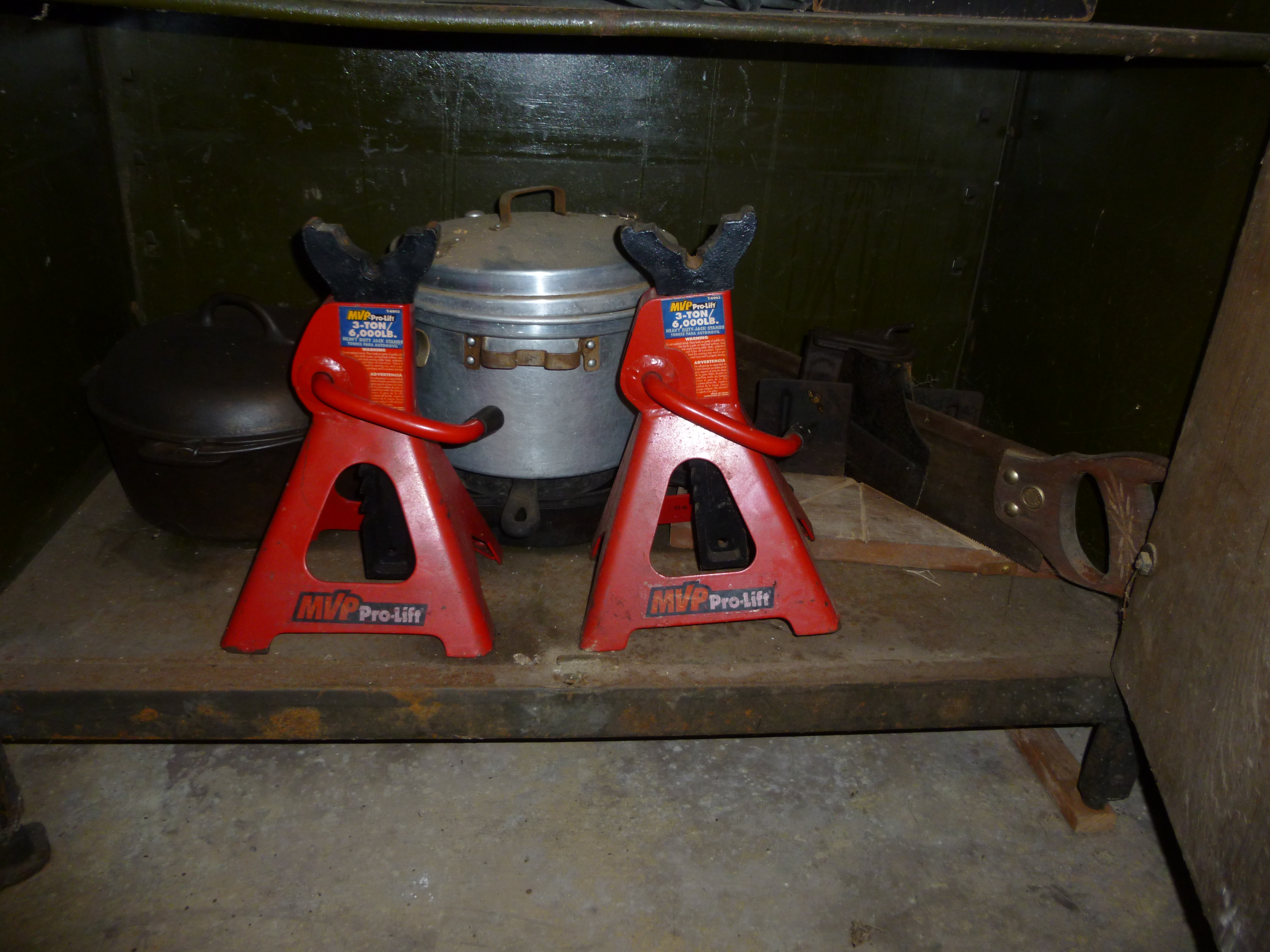 2 Schlitz ball rotating ball lights;  Schlitz beer sign; beer trays; beer bottle collection; 20 ft. alum. ladder; 40 ft. wood ladder; pulley old hand drill; old license plates; metal cabinet; coolers; mole trap; creeper; wrenches; hand tools; small vise; large bench vise; jacks;  Fisk battery charger; Skil saw; come along; power tools; garden plow; Sears push mower;  bench grinder;  lawn chairs; 2 air guns; Red Ryder BB gun; 10W 40 oil;  wood heavy duty tool chest on rollers; level;  Tool Shop auto measure tape; Husky 18” roto tiller; 38” lawn sweeper; 38” aerator; 3 ft. wooden tool box with wire bale; metal pen fencing; model T wrenches; Stihl weed trimmer; other items.