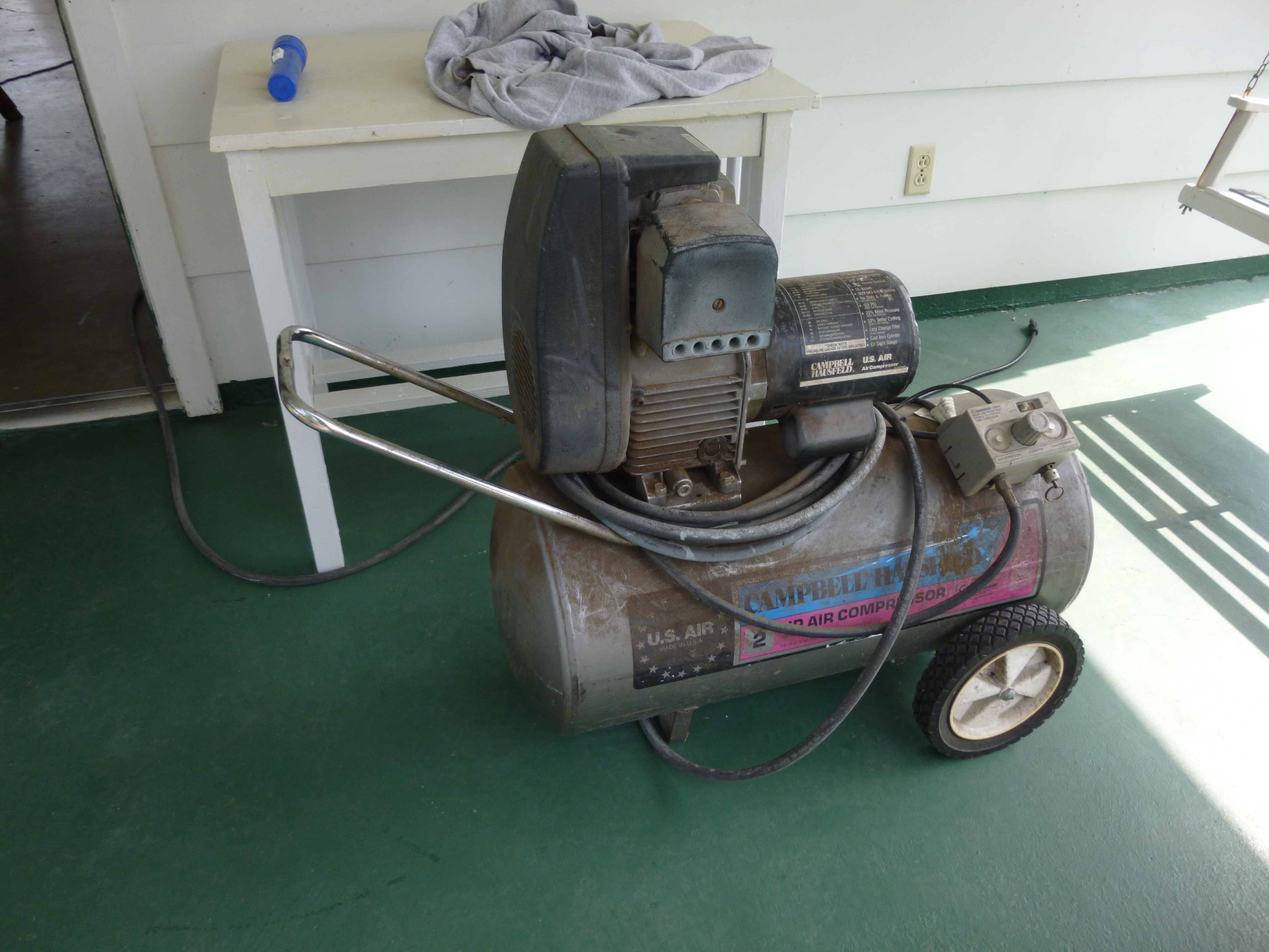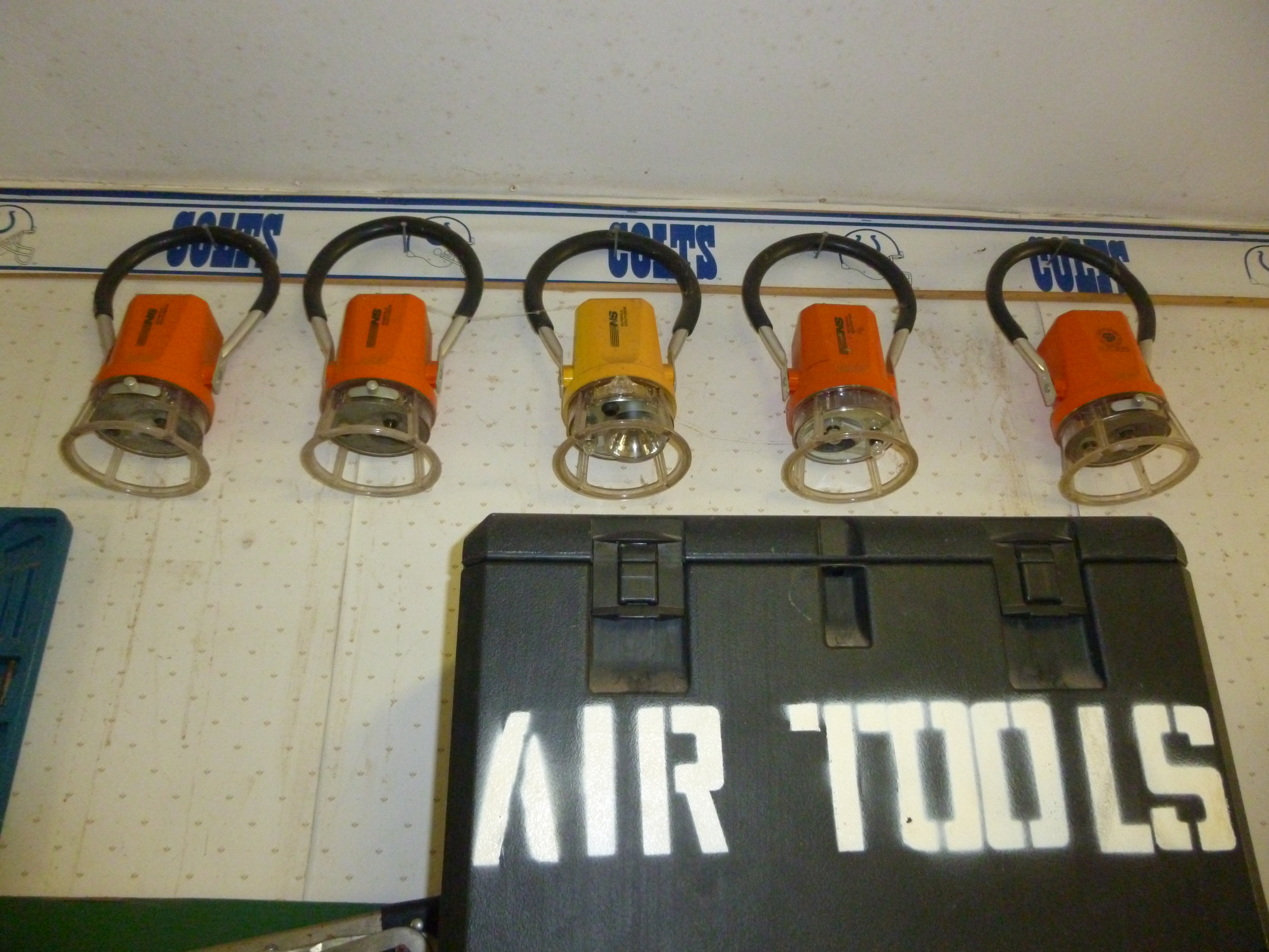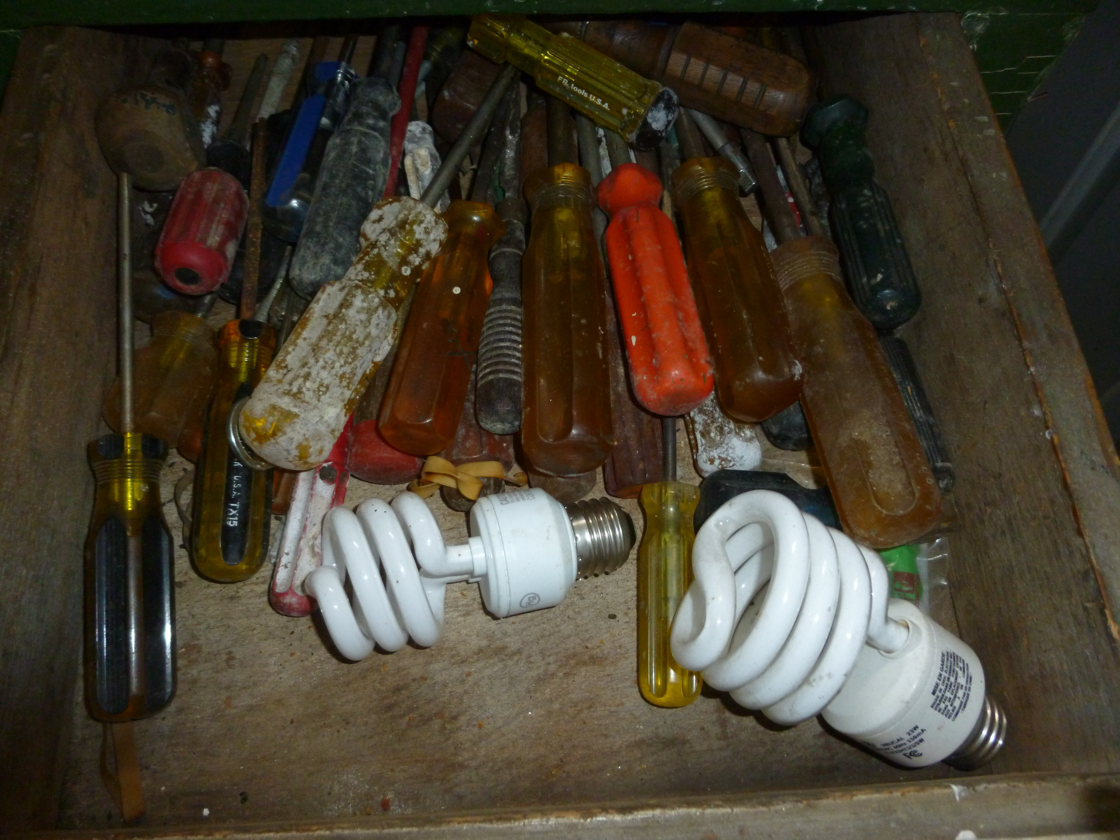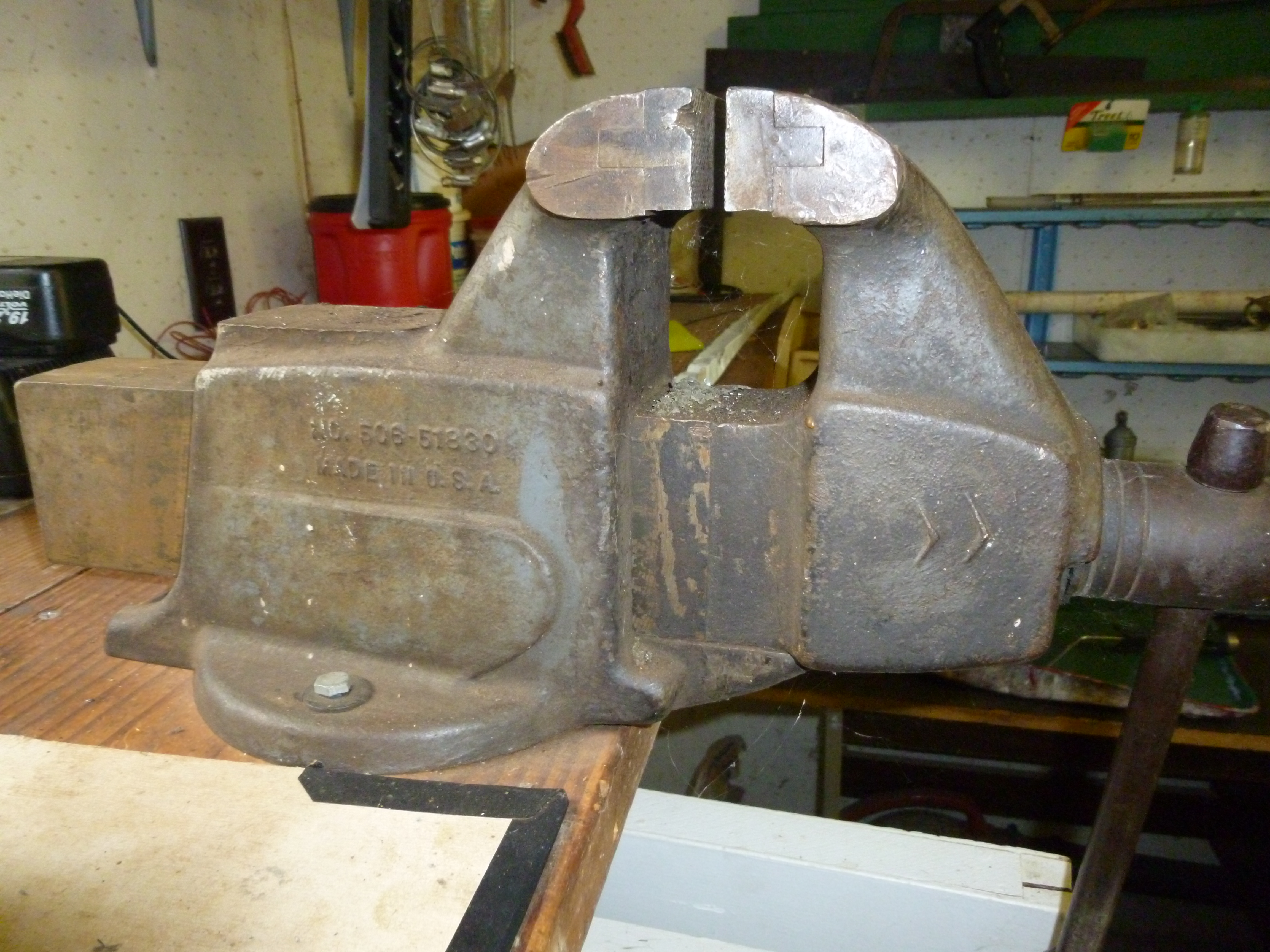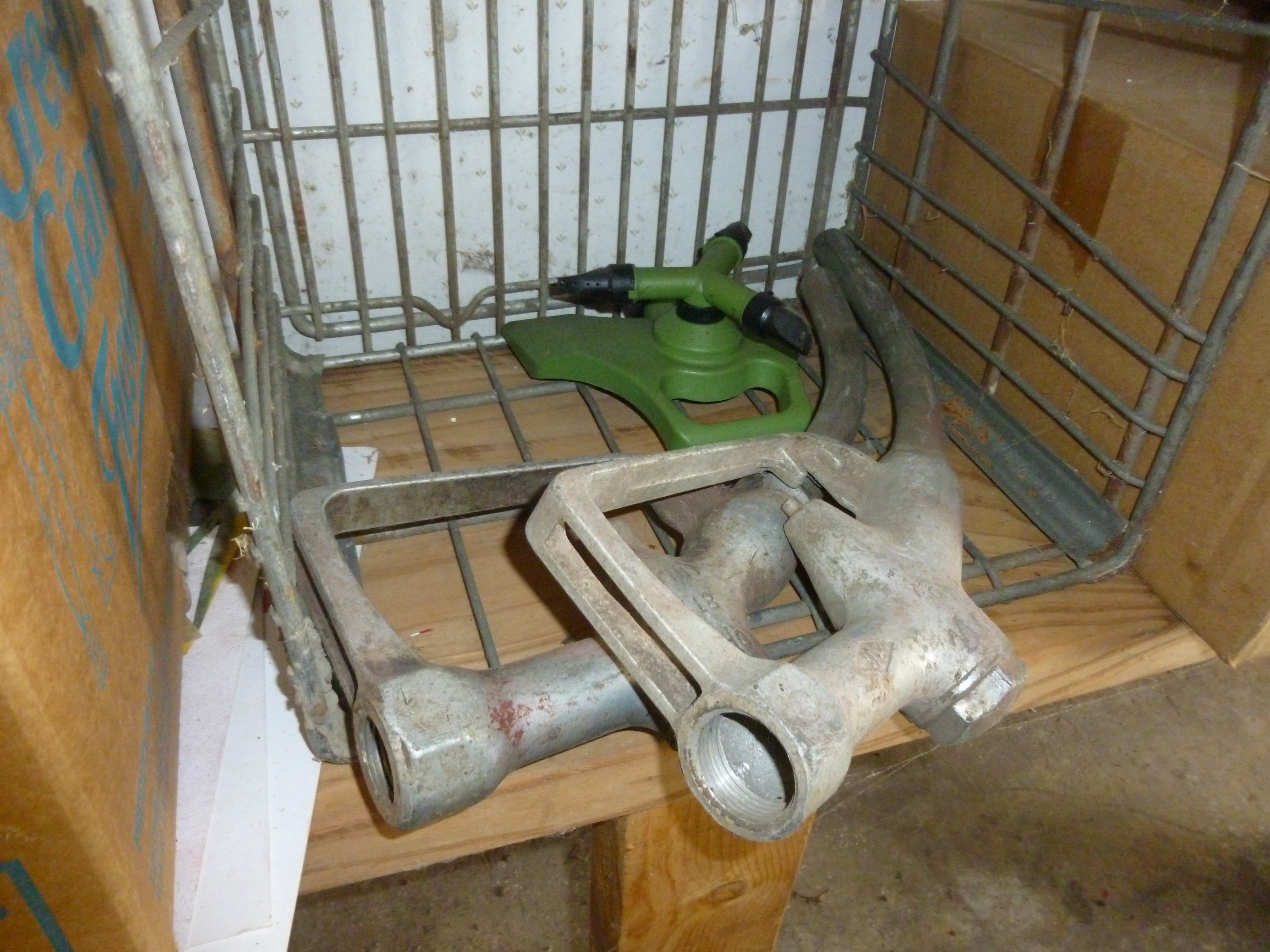 2 Schlitz ball rotating ball lights;  Schlitz beer sign; beer trays; beer bottle collection; 20 ft. alum. ladder; 40 ft. wood ladder; pulley old hand drill; old license plates; metal cabinet; coolers; mole trap; creeper; wrenches; hand tools; small vise; large bench vise; jacks;  Fisk battery charger; Skil saw; come along; power tools; garden plow; Sears push mower;  bench grinder;  lawn chairs; 2 air guns; Red Ryder BB gun; 10W 40 oil;  wood heavy duty tool chest on rollers; level;  Tool Shop auto measure tape; Husky 18” roto tiller; 38” lawn sweeper; 38” aerator; 3 ft. wooden tool box with wire bale; metal pen fencing; model T wrenches; Stihl weed trimmer; other items.