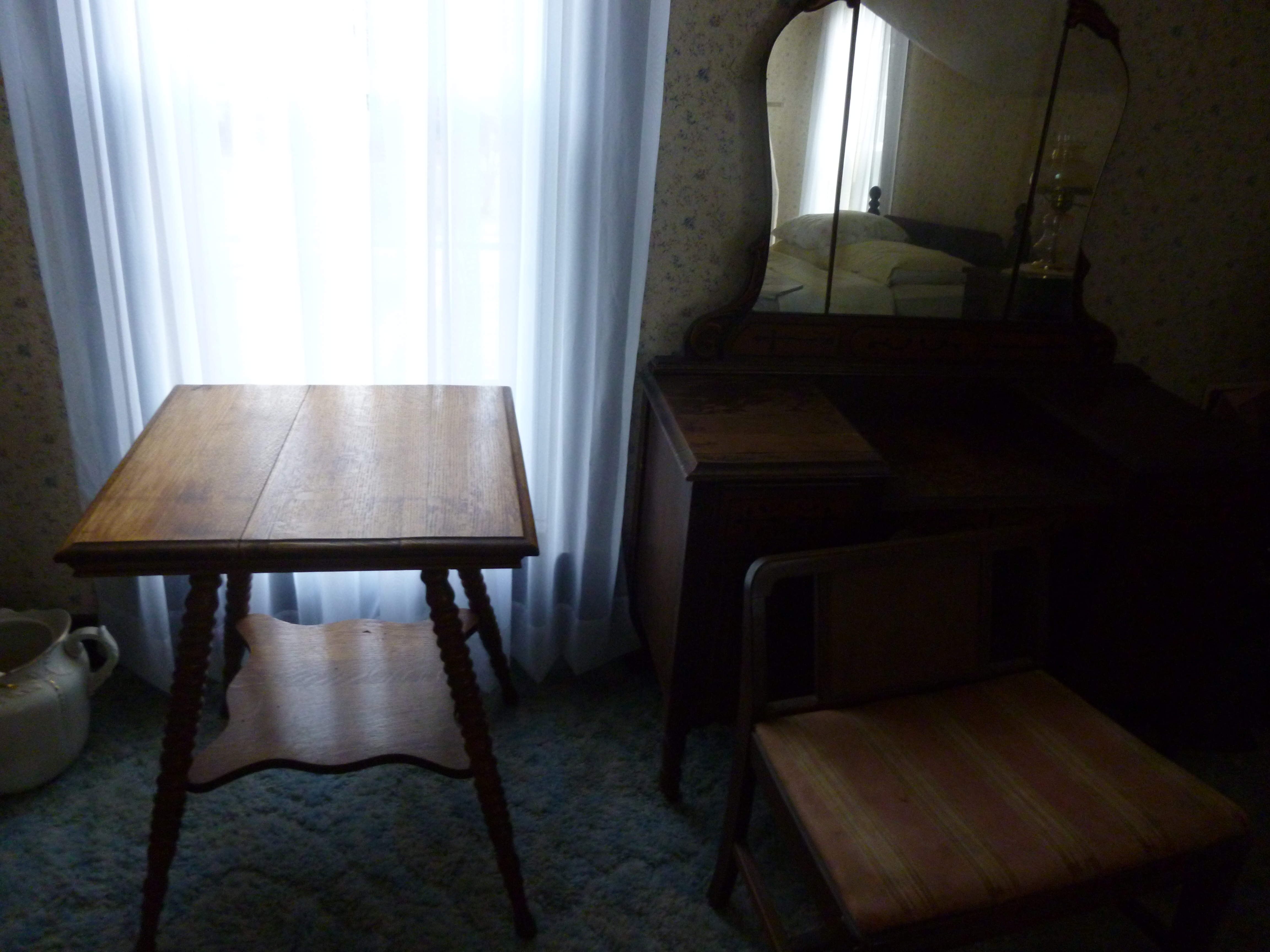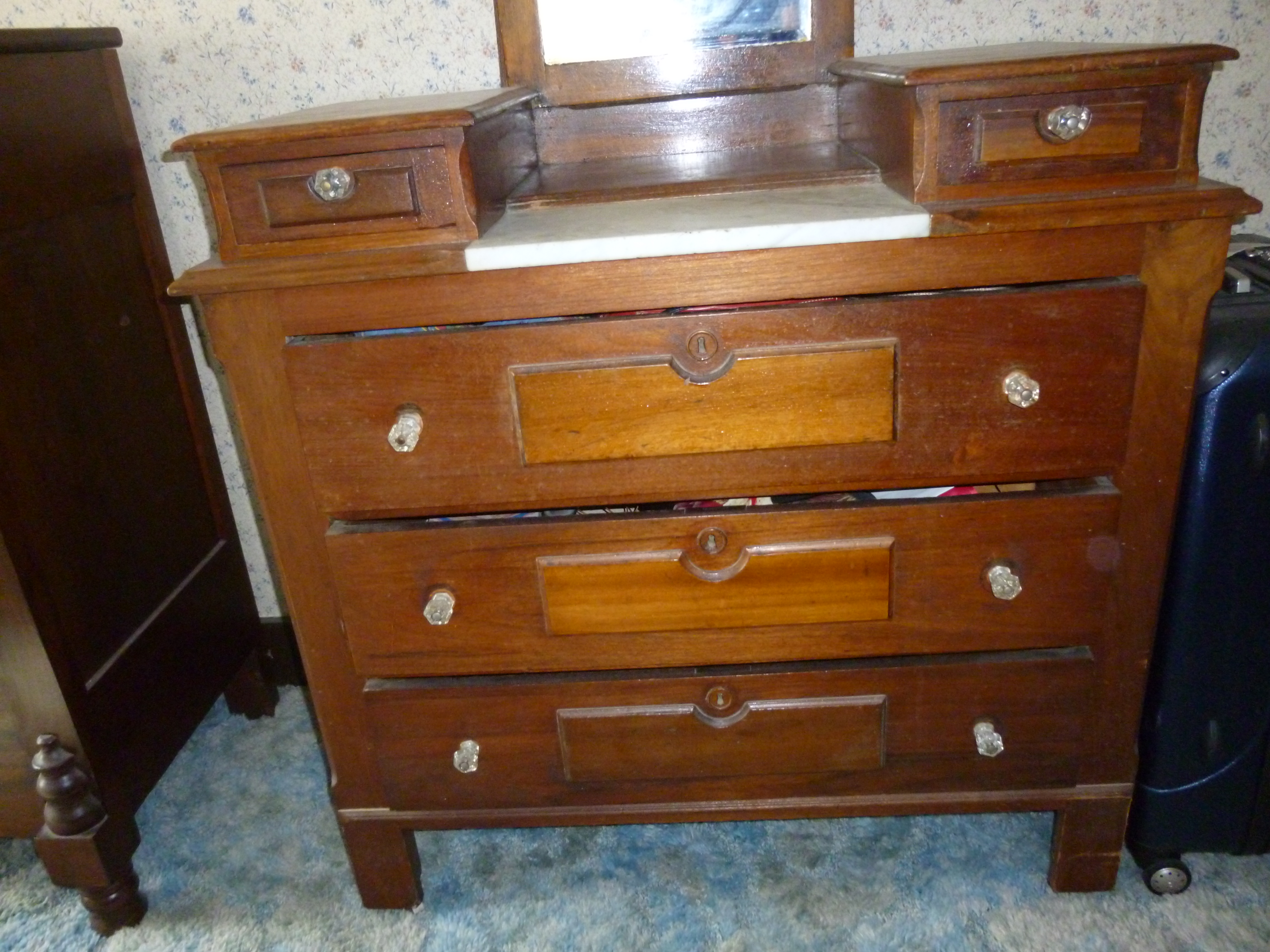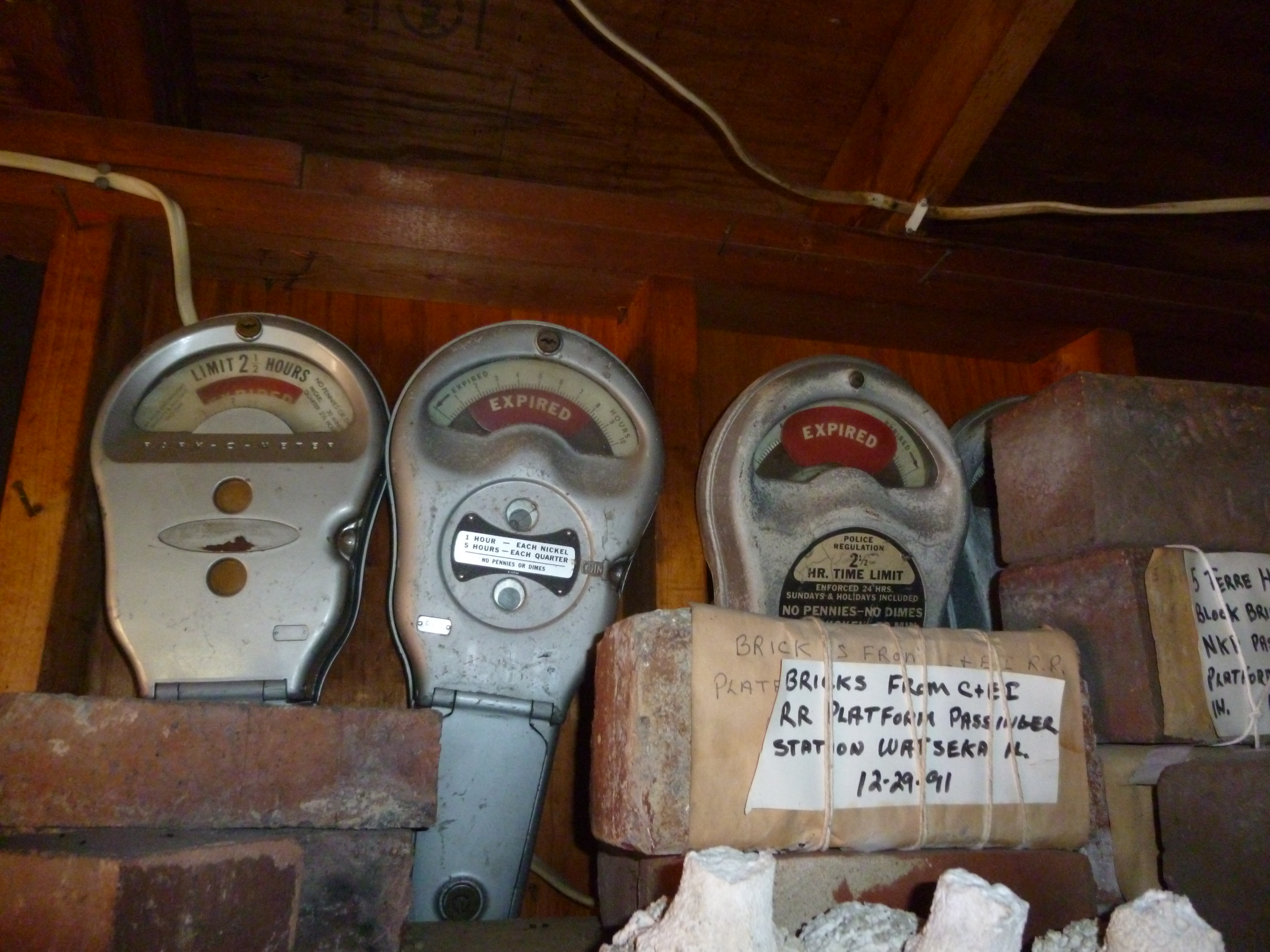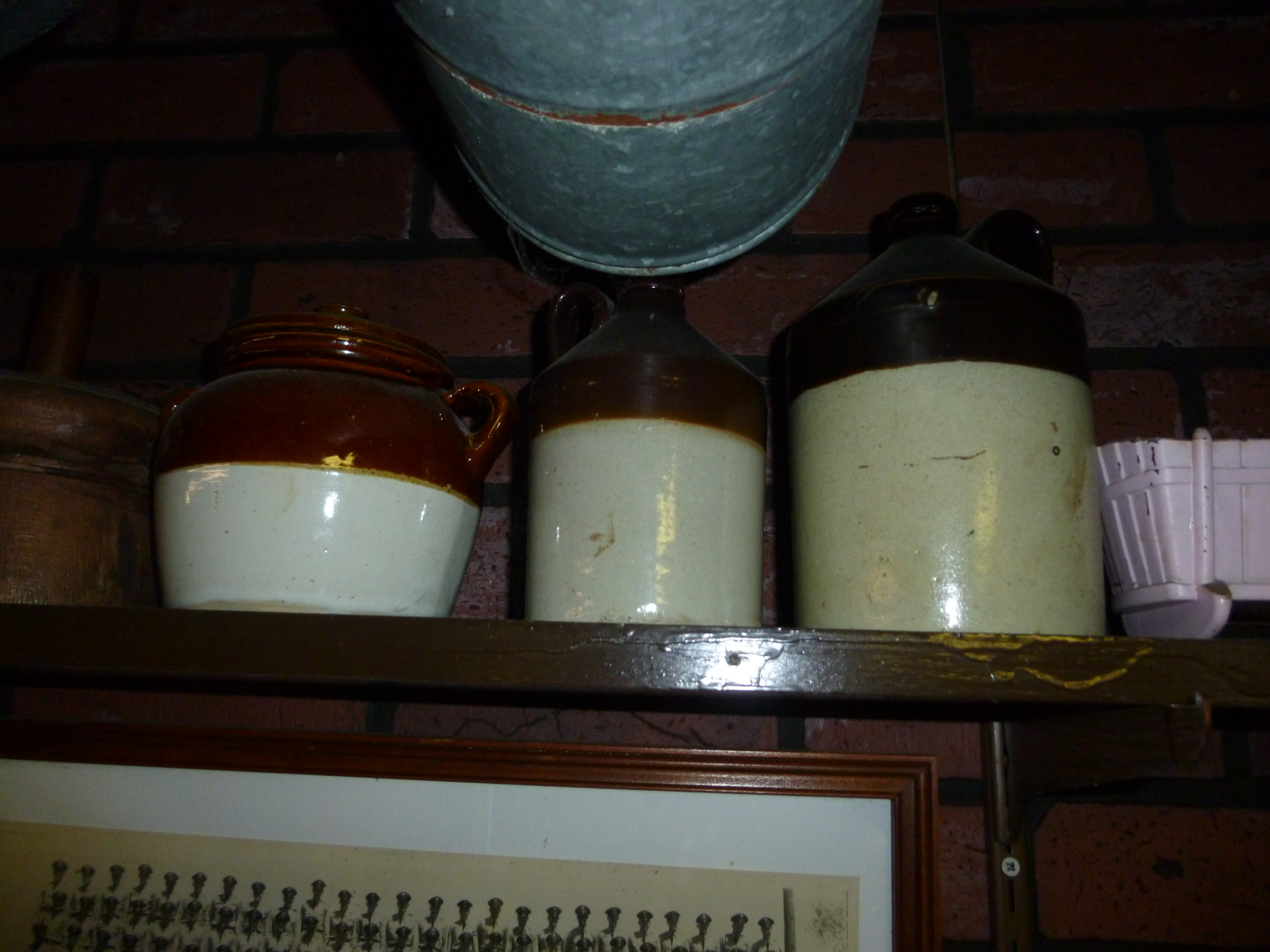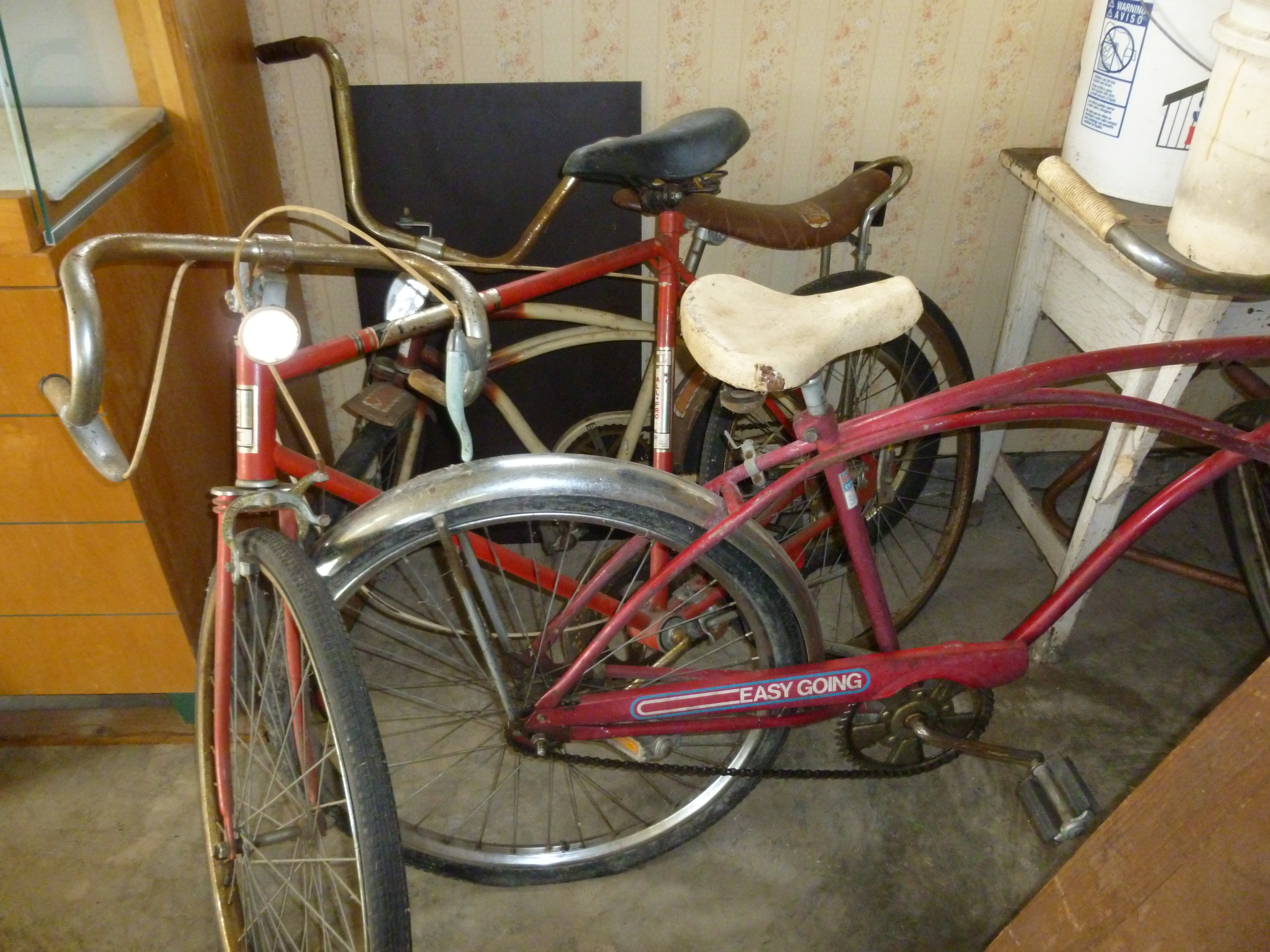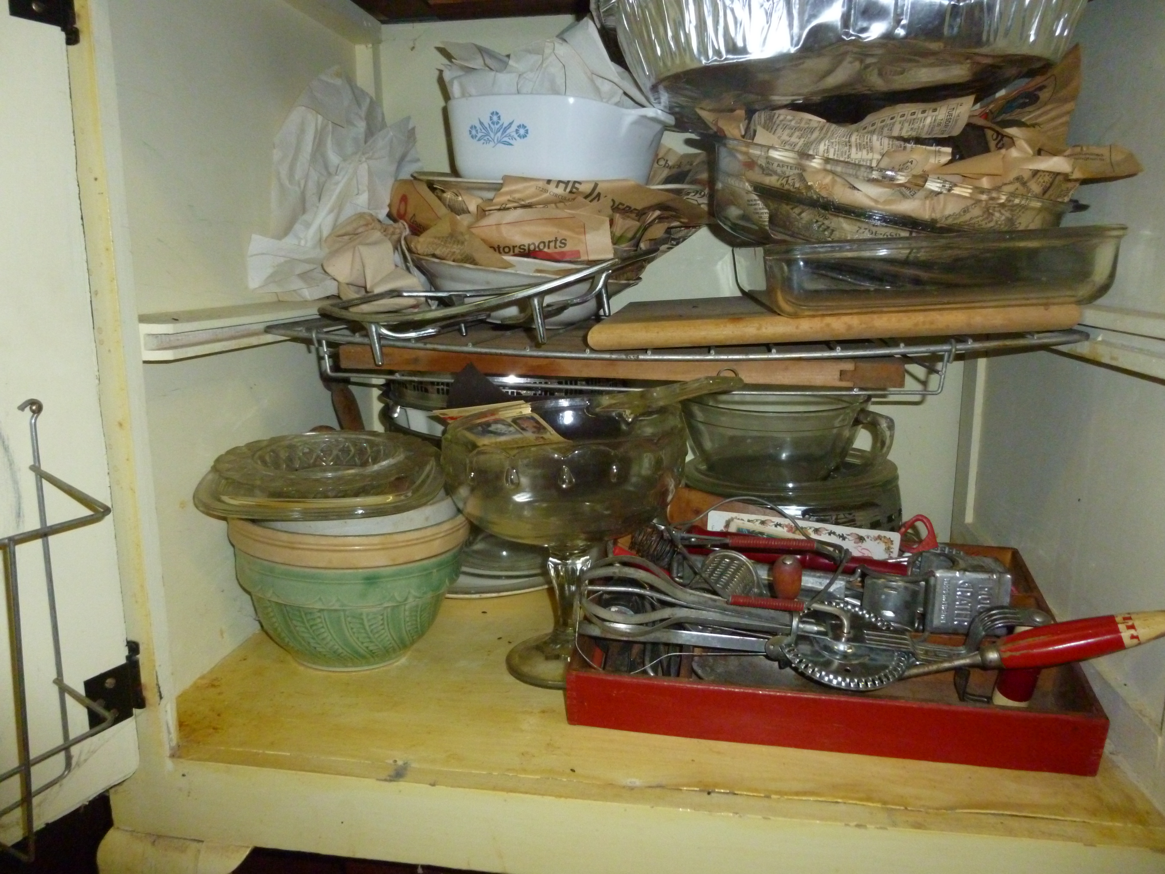 Crocks; oak rocking chair; pressed oak wood table 24” x 36” w/ carving on legs; 1940’s tilt top card table; ; oak frame bevel mirror;  old one blub floor lamp oak 14” x 14” pressed wood Queen Ann leg table; pink Victorian lamp 36” tall; oak desk chair; oak old time office chair on rollers; Gone with The Wind lamp; Roos cedar chest;  3 drawer walnut  blanket chest; 4 drawer burled wood chest; 3 drawer dresser with marble insert; small oak dresser; vintage vanity with bench; square lamp table; old portrait of girl;  4 drawer walnut chest; walnut 1950’s dining table with fluted legs; 1950’s porcelain top table with pullout leaves; white kitchen cabinet with glass doors; wooden German cabinet  6’ x 8 ‘ – 9 drawers; end tables; popcorn machine;  Clabber Girl cans; Fire King bowls; cigarette case with lights; floor lamp; small stands;  ice picks; oak school chair; 5 ft. wood sled; kerosene lamps;  7 ft. tall display lighted cabinet; 4 wooden ironing boards; Sally  Ann Bread display shelves; 2 dressers; large desk; file cabinet; WW II papers; Army blanket; Capehart TV 1953 in cabinet; 7 UP metal cooler; park bench; metal yard chairs; tricycles; bikes; JC Higgins Spring rocking Wonder horse; eagle statue; coffee mill; small oak bookcase with doors; 8 ft.  long 5 tier oak magazine rack; 5 gal. jug; Gazelle exerciser; Crams Imperial World globe; 1930’s lamps; 4 little red lanterns; 1970’s games;   7 Up glass bottles with girl – Chicago; old Coca Cola glass bottles; Old beer Fecker Brewery bottles Danville, Illinois; Illiana milk jug; Terre Haute Bottling Co. beer; JC Higgins 1940’s rifle single shot; crystal coffee grinder;   iron kettle;  6 parking meter heads; bricks from Brazil, Clinton, Wabash, Cayuga,  etc.;  2 Hummel  Goebal figurines; W C Fields statue; Fort Sill Oklahoma 1962 picture; set of 32 Harvard classics – 1910; 1912 History of U.S.; 1801 pottery milk jug with bail and lid; 2 jugs made at Veedersburg brick yard; 8’ x 10’ area rug; canner; table linens; set of Wm Rogers SP for 8 with box; sliding  glass bookcase; Kundo   clock;  white & red trim porcelain pans; iron skillets; iron favorite Dutch oven; cast iron griddle;  wooden chopping block; wood 2 shelf bookcase; old painted kitchen cupboard; cookbooks; salt crock; flour sifters; oak antique dining room server with 2 drawers; glassware – some depression; La z Boy floral sofa; oak coffee table; sofa table picture frames; Cracker Barrel wooden rocker; small wall shelf;  replica of USS Constitution; Mickey Mouse ears; collection of Autumn Leaf pattern from Jewell Tea; bell collection; foldup table; dressers; Toledo candy sealer with tray; fans; sheet music; Remo drum set – 8 pieces; 1948 Indy 500 model race car.