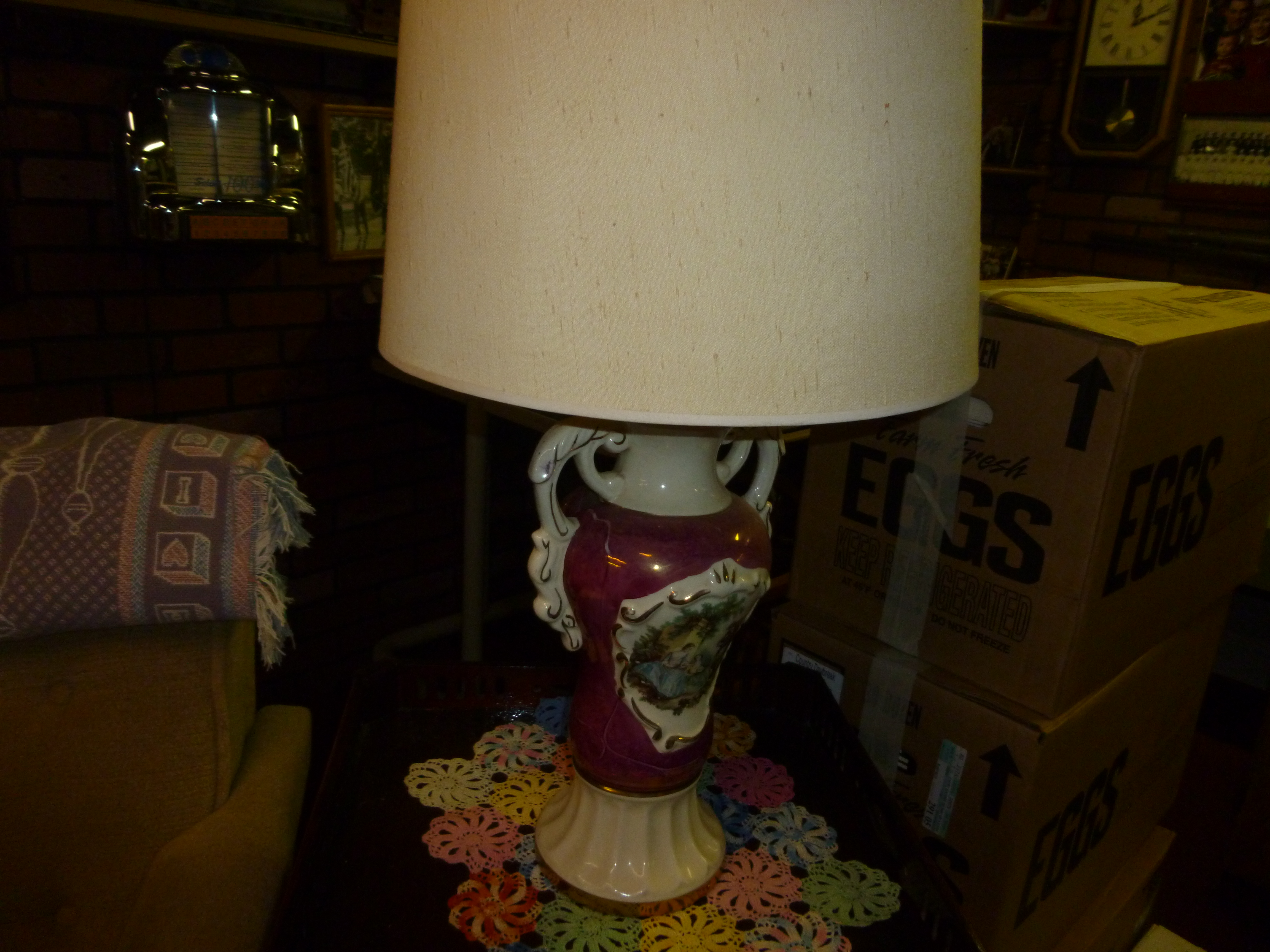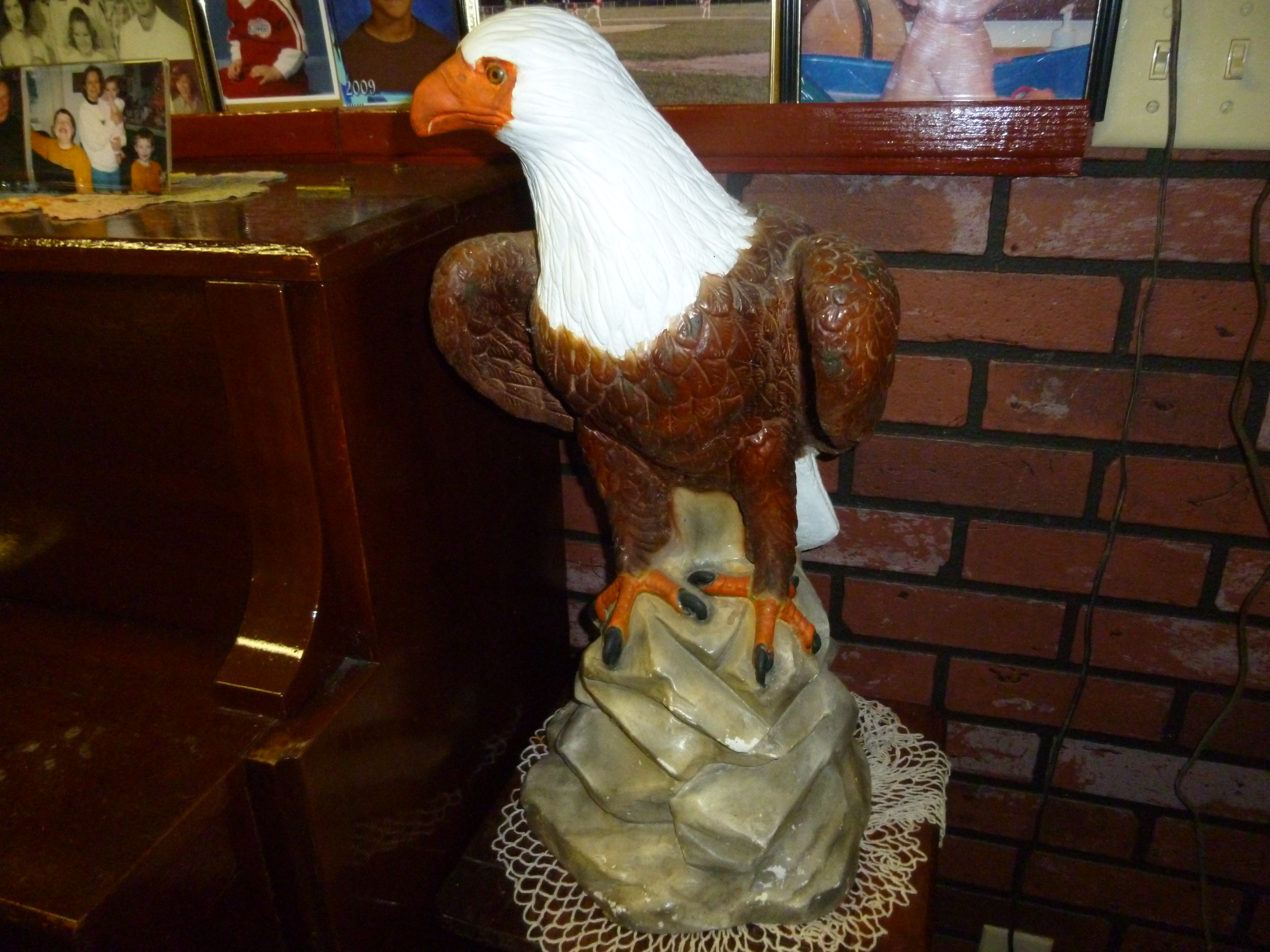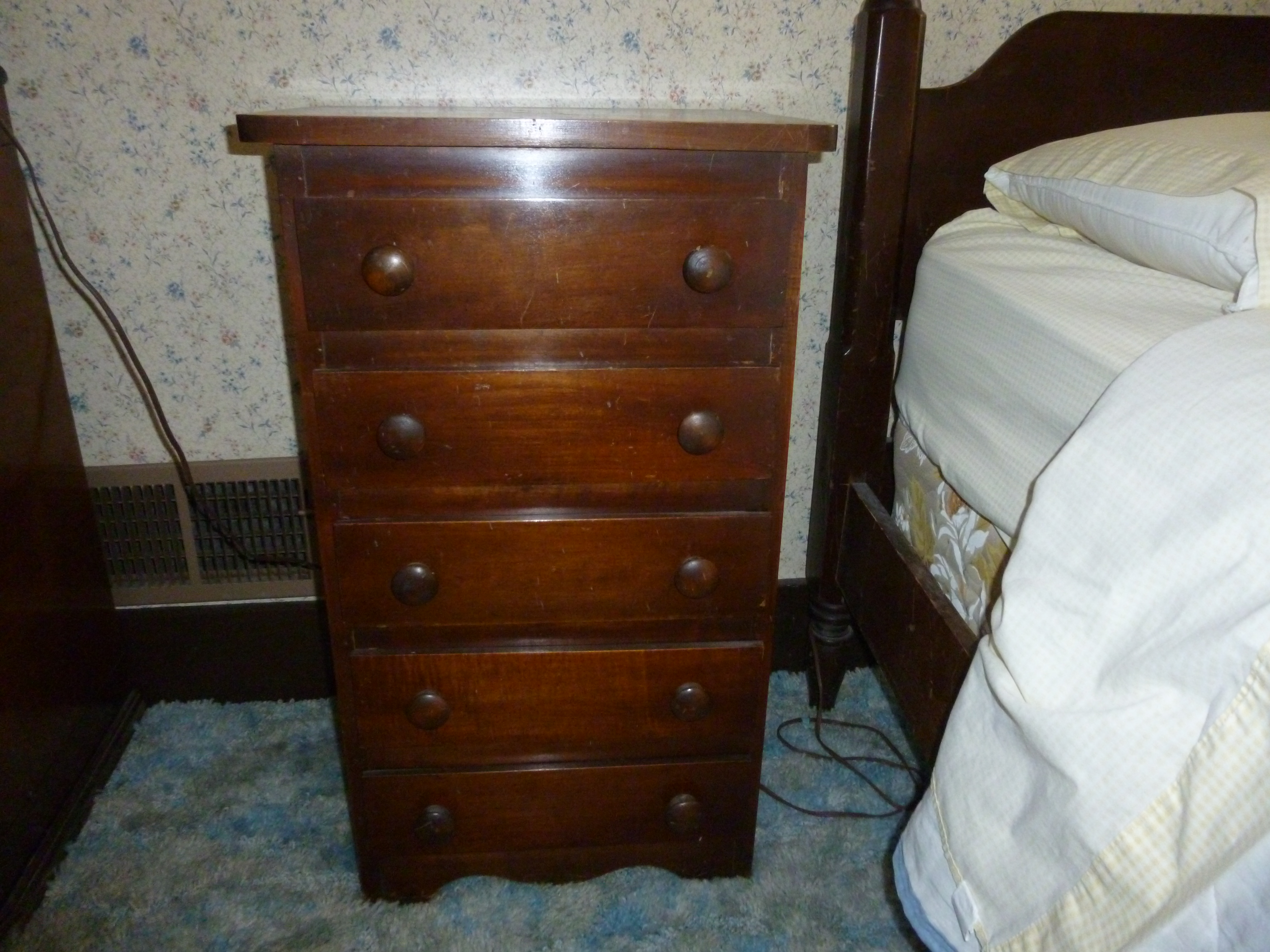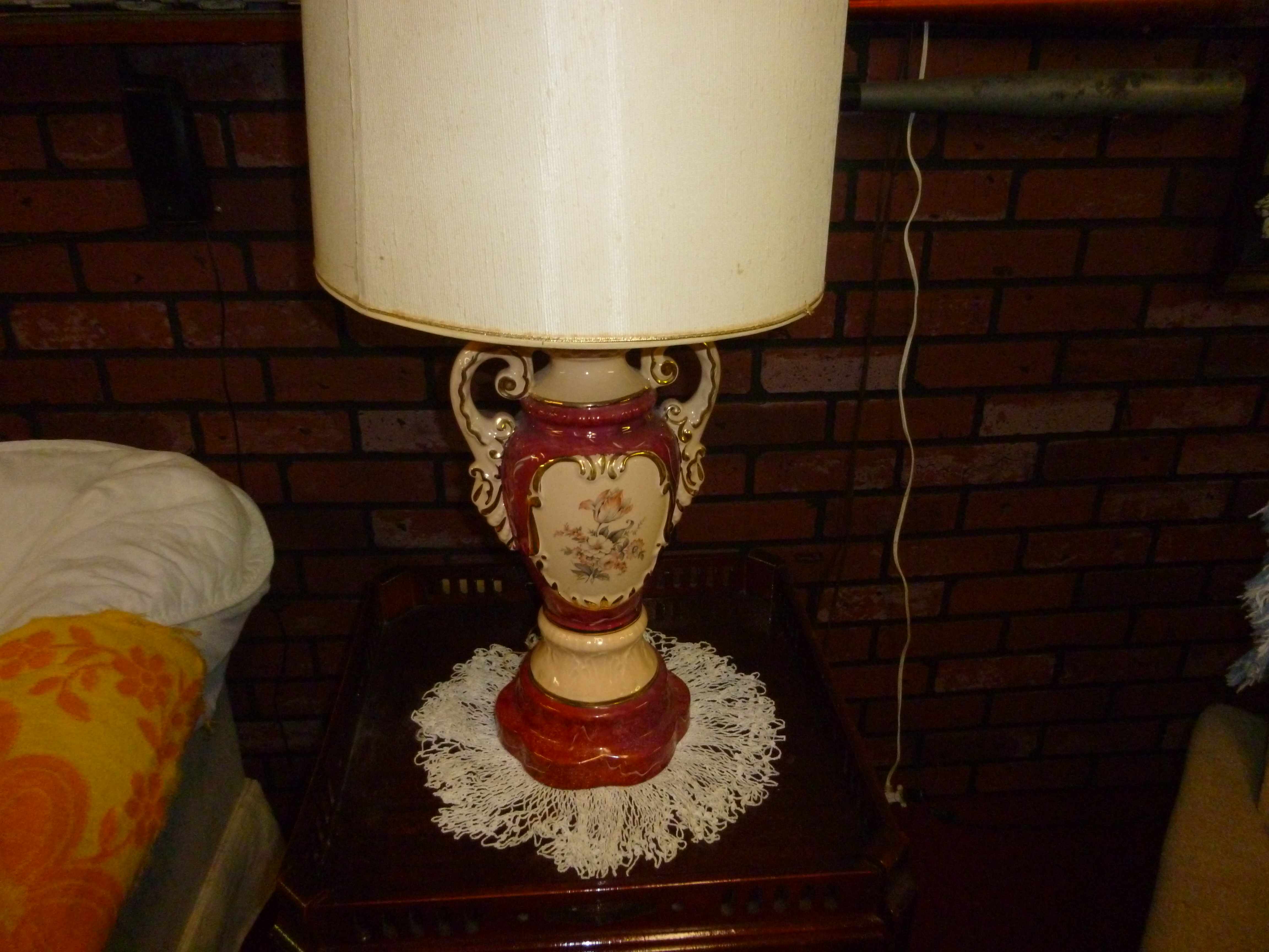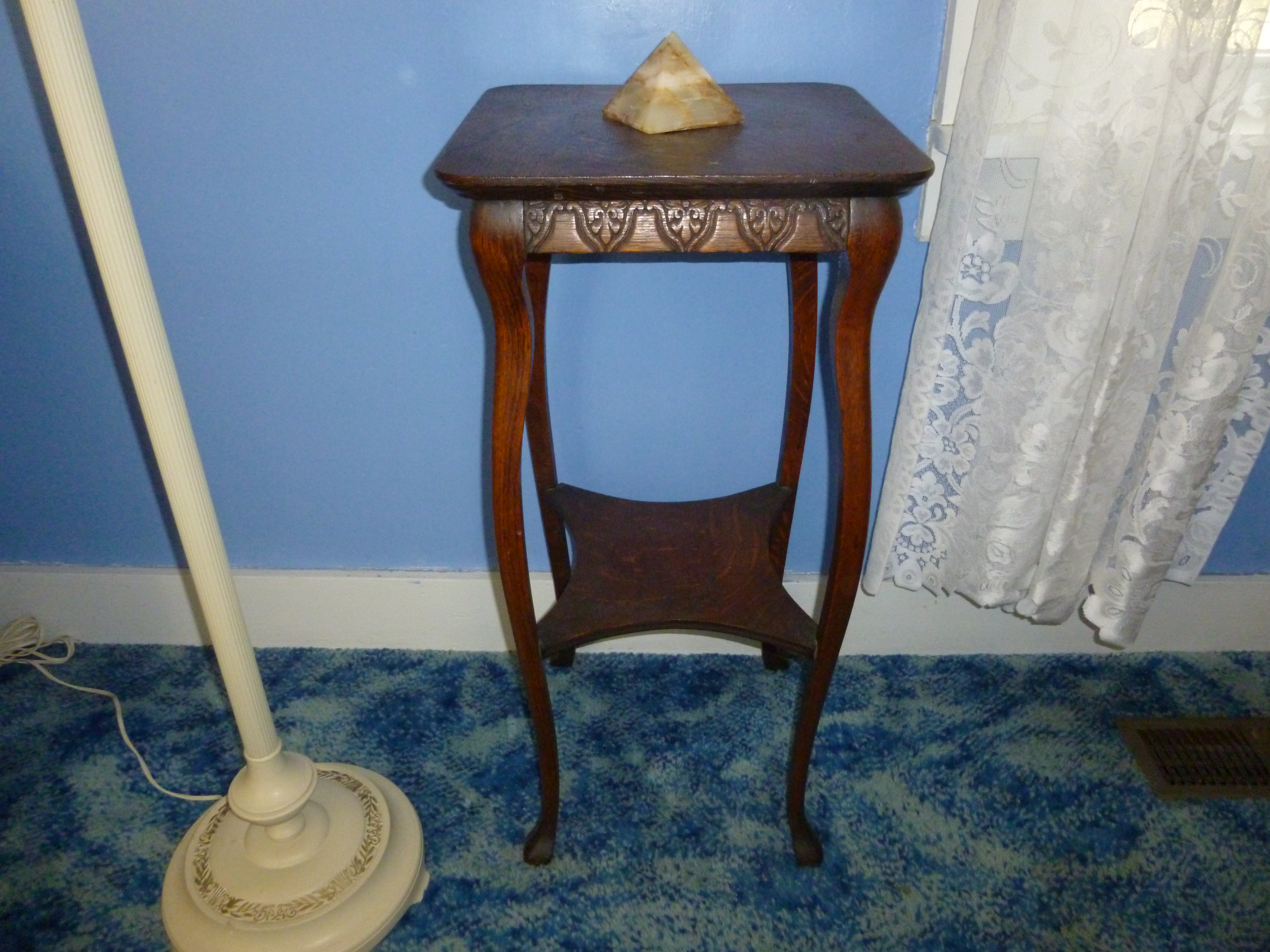Crocks; oak rocking chair; pressed oak wood table 24” x 36” w/ carving on legs; 1940’s tilt top card table; ; oak frame bevel mirror;  old one blub floor lamp oak 14” x 14” pressed wood Queen Ann leg table; pink Victorian lamp 36” tall; oak desk chair; oak old time office chair on rollers; Gone with The Wind lamp; Roos cedar chest;  3 drawer walnut  blanket chest; 4 drawer burled wood chest; 3 drawer dresser with marble insert; small oak dresser; vintage vanity with bench; square lamp table; old portrait of girl;  4 drawer walnut chest; walnut 1950’s dining table with fluted legs; 1950’s porcelain top table with pullout leaves; white kitchen cabinet with glass doors; wooden German cabinet  6’ x 8 ‘ – 9 drawers; end tables; popcorn machine;  Clabber Girl cans; Fire King bowls; cigarette case with lights; floor lamp; small stands;  ice picks; oak school chair; 5 ft. wood sled; kerosene lamps;  7 ft. tall display lighted cabinet; 4 wooden ironing boards; Sally  Ann Bread display shelves; 2 dressers; large desk; file cabinet; WW II papers; Army blanket; Capehart TV 1953 in cabinet; 7 UP metal cooler; park bench; metal yard chairs; tricycles; bikes; JC Higgins Spring rocking Wonder horse; eagle statue; coffee mill; small oak bookcase with doors; 8 ft.  long 5 tier oak magazine rack; 5 gal. jug; Gazelle exerciser; Crams Imperial World globe; 1930’s lamps; 4 little red lanterns; 1970’s games;   7 Up glass bottles with girl – Chicago; old Coca Cola glass bottles; Old beer Fecker Brewery bottles Danville, Illinois; Illiana milk jug; Terre Haute Bottling Co. beer; JC Higgins 1940’s rifle single shot; crystal coffee grinder;   iron kettle;  6 parking meter heads; bricks from Brazil, Clinton, Wabash, Cayuga,  etc.;  2 Hummel  Goebal figurines; W C Fields statue; Fort Sill Oklahoma 1962 picture; set of 32 Harvard classics – 1910; 1912 History of U.S.; 1801 pottery milk jug with bail and lid; 2 jugs made at Veedersburg brick yard; 8’ x 10’ area rug; canner; table linens; set of Wm Rogers SP for 8 with box; sliding  glass bookcase; Kundo   clock;  white & red trim porcelain pans; iron skillets; iron favorite Dutch oven; cast iron griddle;  wooden chopping block; wood 2 shelf bookcase; old painted kitchen cupboard; cookbooks; salt crock; flour sifters; oak antique dining room server with 2 drawers; glassware – some depression; La z Boy floral sofa; oak coffee table; sofa table picture frames; Cracker Barrel wooden rocker; small wall shelf;  replica of USS Constitution; Mickey Mouse ears; collection of Autumn Leaf pattern from Jewell Tea; bell collection; foldup table; dressers; Toledo candy sealer with tray; fans; sheet music; Remo drum set – 8 pieces; 1948 Indy 500 model race car.