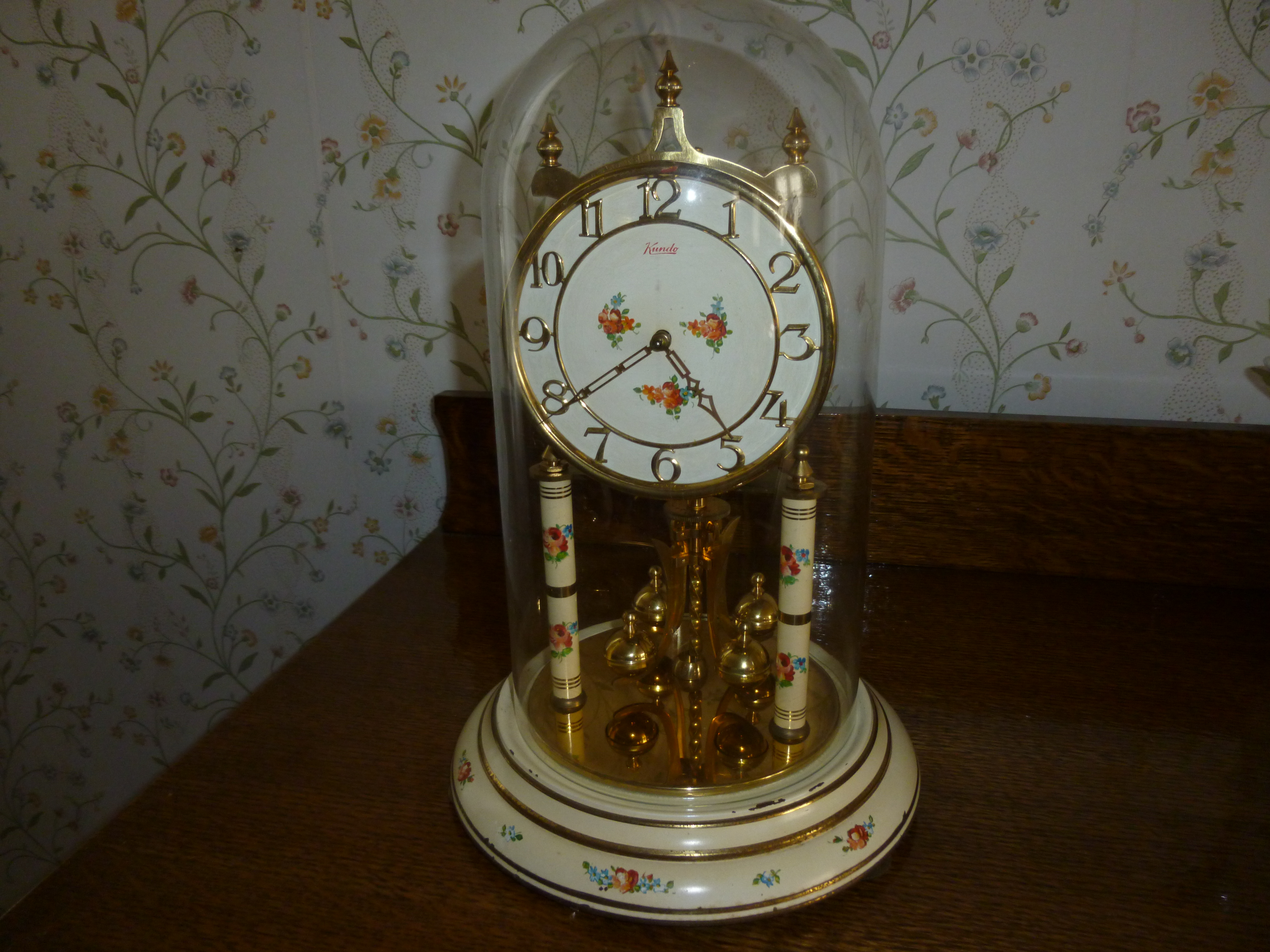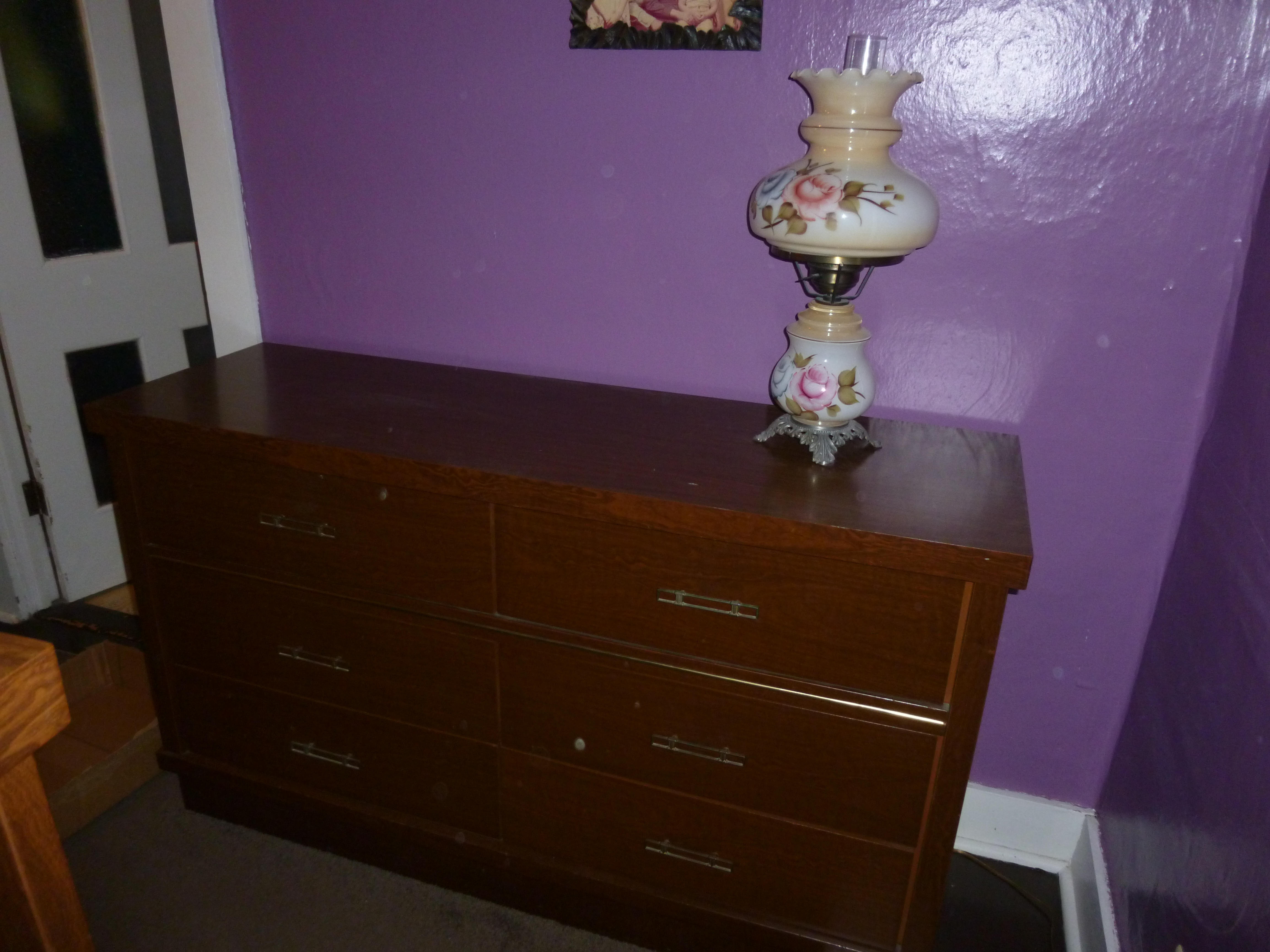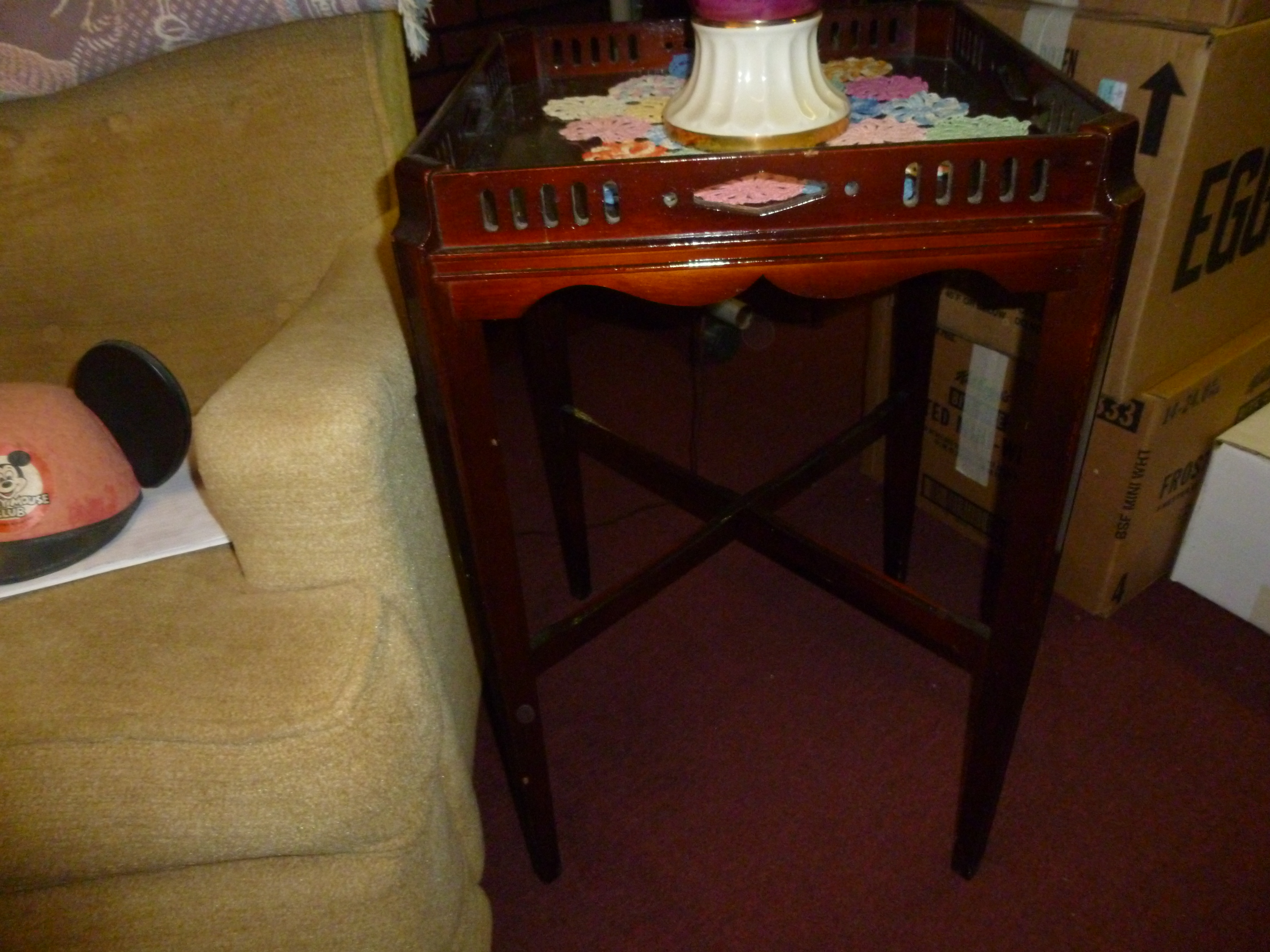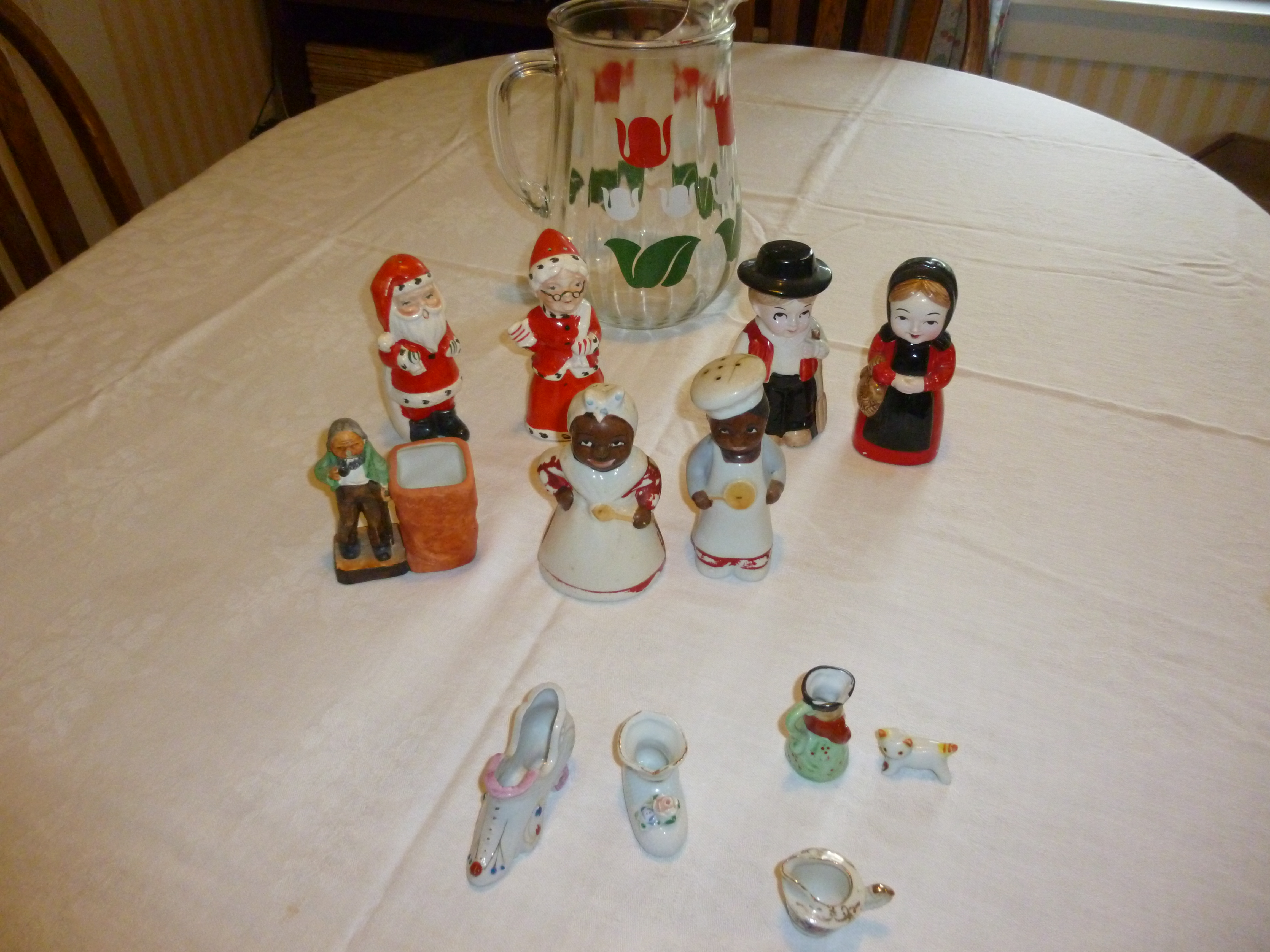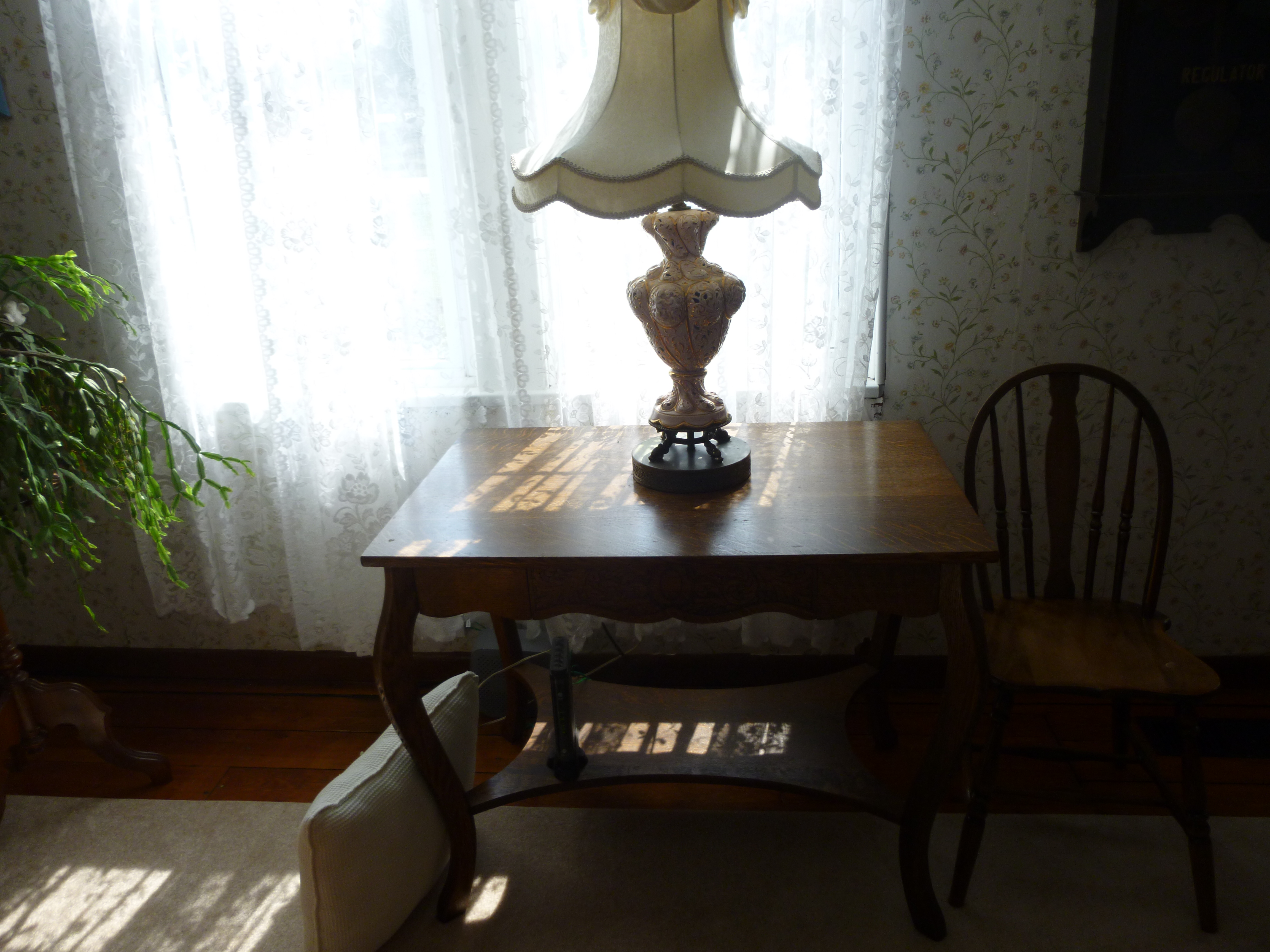 Crocks; oak rocking chair; pressed oak wood table 24” x 36” w/ carving on legs; 1940’s tilt top card table; ; oak frame bevel mirror;  old one blub floor lamp oak 14” x 14” pressed wood Queen Ann leg table; pink Victorian lamp 36” tall; oak desk chair; oak old time office chair on rollers; Gone with The Wind lamp; Roos cedar chest;  3 drawer walnut  blanket chest; 4 drawer burled wood chest; 3 drawer dresser with marble insert; small oak dresser; vintage vanity with bench; square lamp table; old portrait of girl;  4 drawer walnut chest; walnut 1950’s dining table with fluted legs; 1950’s porcelain top table with pullout leaves; white kitchen cabinet with glass doors; wooden German cabinet  6’ x 8 ‘ – 9 drawers; end tables; popcorn machine;  Clabber Girl cans; Fire King bowls; cigarette case with lights; floor lamp; small stands;  ice picks; oak school chair; 5 ft. wood sled; kerosene lamps;  7 ft. tall display lighted cabinet; 4 wooden ironing boards; Sally  Ann Bread display shelves; 2 dressers; large desk; file cabinet; WW II papers; Army blanket; Capehart TV 1953 in cabinet; 7 UP metal cooler; park bench; metal yard chairs; tricycles; bikes; JC Higgins Spring rocking Wonder horse; eagle statue; coffee mill; small oak bookcase with doors; 8 ft.  long 5 tier oak magazine rack; 5 gal. jug; Gazelle exerciser; Crams Imperial World globe; 1930’s lamps; 4 little red lanterns; 1970’s games;   7 Up glass bottles with girl – Chicago; old Coca Cola glass bottles; Old beer Fecker Brewery bottles Danville, Illinois; Illiana milk jug; Terre Haute Bottling Co. beer; JC Higgins 1940’s rifle single shot; crystal coffee grinder;   iron kettle;  6 parking meter heads; bricks from Brazil, Clinton, Wabash, Cayuga,  etc.;  2 Hummel  Goebal figurines; W C Fields statue; Fort Sill Oklahoma 1962 picture; set of 32 Harvard classics – 1910; 1912 History of U.S.; 1801 pottery milk jug with bail and lid; 2 jugs made at Veedersburg brick yard; 8’ x 10’ area rug; canner; table linens; set of Wm Rogers SP for 8 with box; sliding  glass bookcase; Kundo   clock;  white & red trim porcelain pans; iron skillets; iron favorite Dutch oven; cast iron griddle;  wooden chopping block; wood 2 shelf bookcase; old painted kitchen cupboard; cookbooks; salt crock; flour sifters; oak antique dining room server with 2 drawers; glassware – some depression; La z Boy floral sofa; oak coffee table; sofa table picture frames; Cracker Barrel wooden rocker; small wall shelf;  replica of USS Constitution; Mickey Mouse ears; collection of Autumn Leaf pattern from Jewell Tea; bell collection; foldup table; dressers; Toledo candy sealer with tray; fans; sheet music; Remo drum set – 8 pieces; 1948 Indy 500 model race car.
